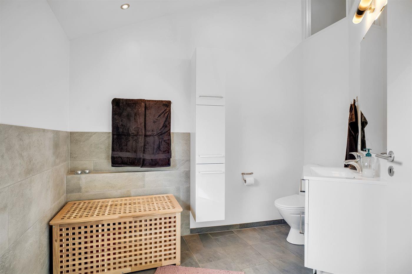 Der er 1 badeværelse med bruseniche og 1 toilet.. Der er gulvvarme på 1 badeværelse.