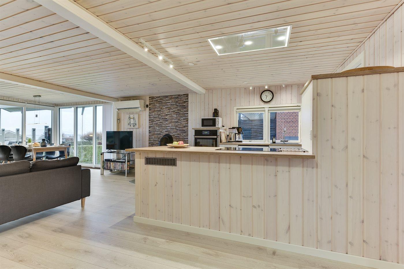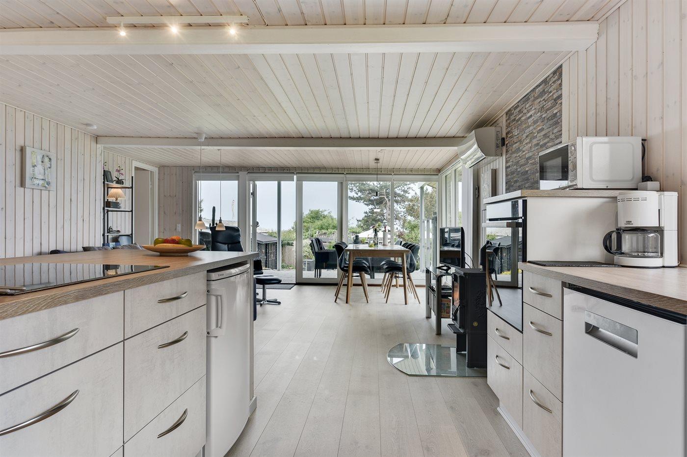 Køkkenet er udstyret med 1 køleskab. Der er 4 induktionskogeplader, varmluftovn, mikrobølgeovn samt opvaskemaskine.