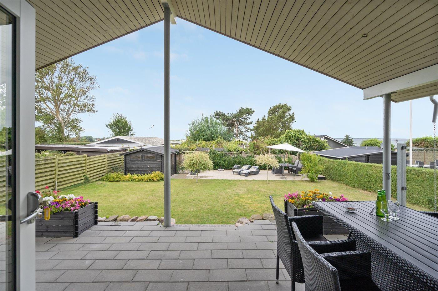 Ferieboligen er beliggende på en 525 m² stor havegrund. Der er 200 m til havet. Nærmeste forretning er beliggende i en afstand af 2000 m. Til ferieboligen hører 40 m² terrasseareal. Desuden er der 30 m² overdækket terrasse. Sandkasse. Der er kulgrill til rådighed. Parkering ved ferieboligen.