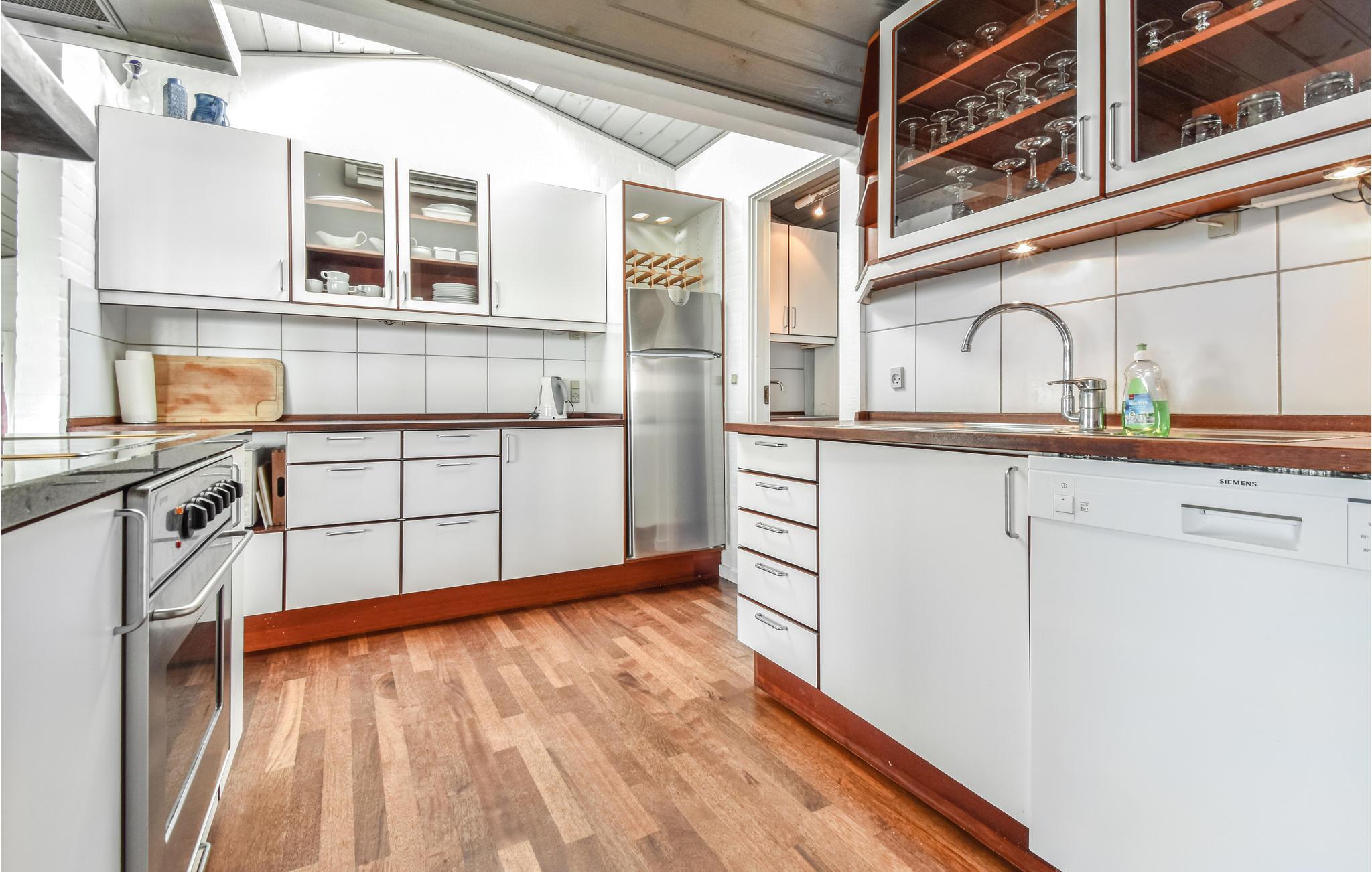 Dette flotte og attraktive feriehus er totalrenoveret, således at det er smagfuldt indrettet med moderne møbler. Der er panoramaudsigt over havet fra den flotte køkken/opholds- og spisestue med trægulv. Huset er ideelt til to familier, da det har to badeværelser, hvoraf det ene indeholder et 4 personers spabad og har adgang til saunaen. Alle moderne bekvemmeligheder er i øvrigt tilstede i huset. Huset er spændende indrettet med spisestue i forskudte plan, og det er omgivet af flere terrasser. Kort køreafstand til Faaborg, golfbane og svømmehal.