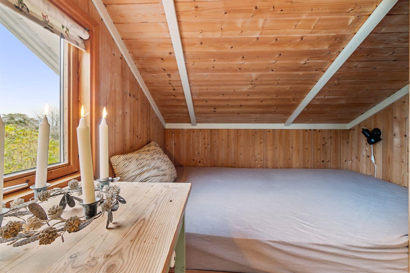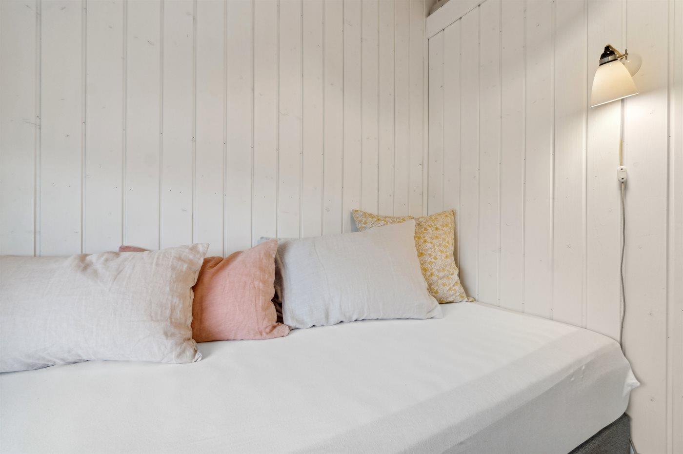 Der er i alt 2 soveværelser. Sovepladserne fordeler sig på: 2 sovepladser i dobbeltseng. 1 soveplads i enkeltseng. 2 sovepladser i alkove. 2 af disse sovepladser befinder sig i stuen.