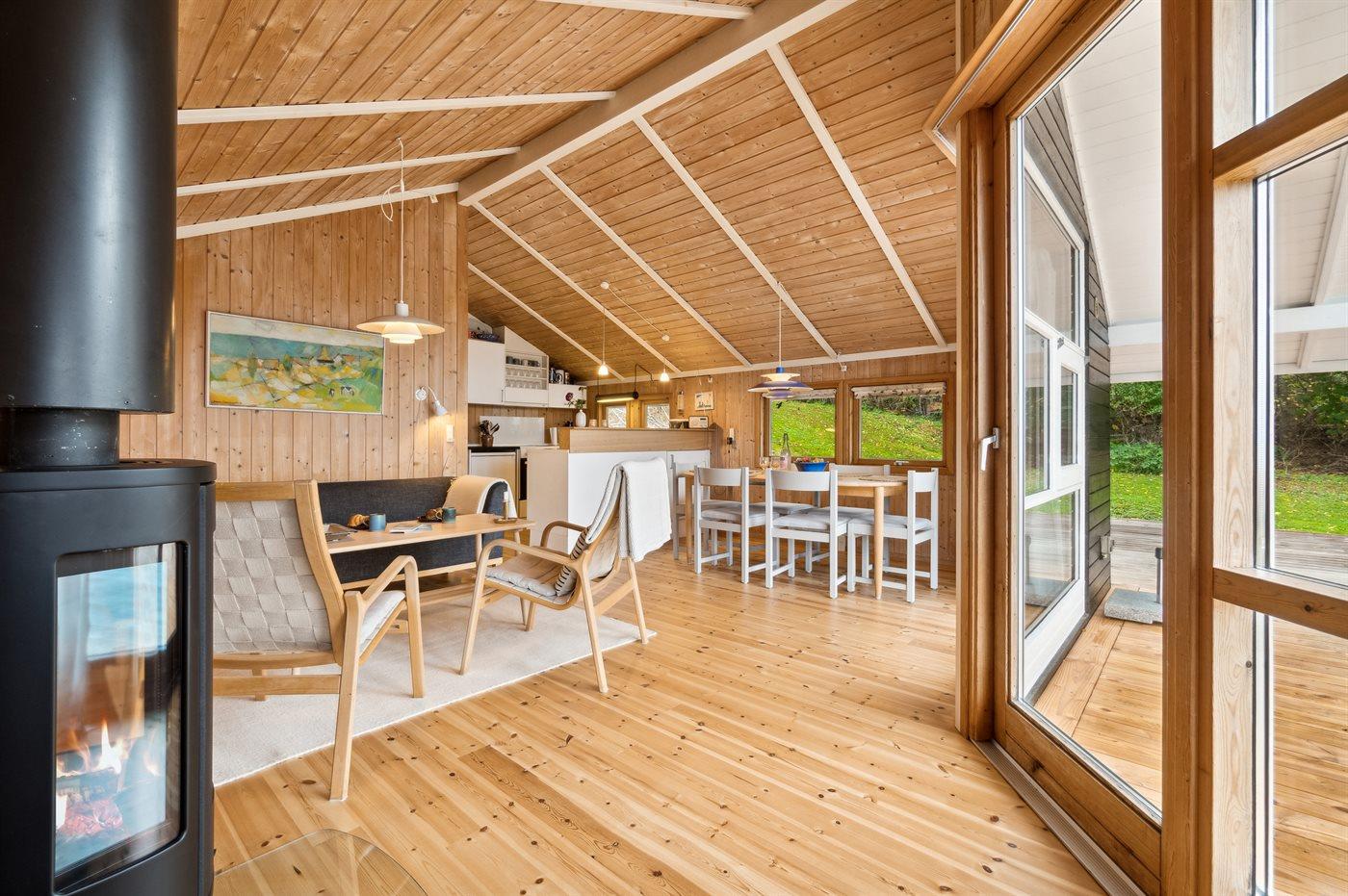 Et flot beliggende og pænt sommerhus med en fantastisk udsigt over det skrånende terræn og over havet. Huset er velplejet og med flotte trægulve afhøvlet i 2023, hvor der også blev anlagt en stor, flot træterrasse med den fineste udsigt.