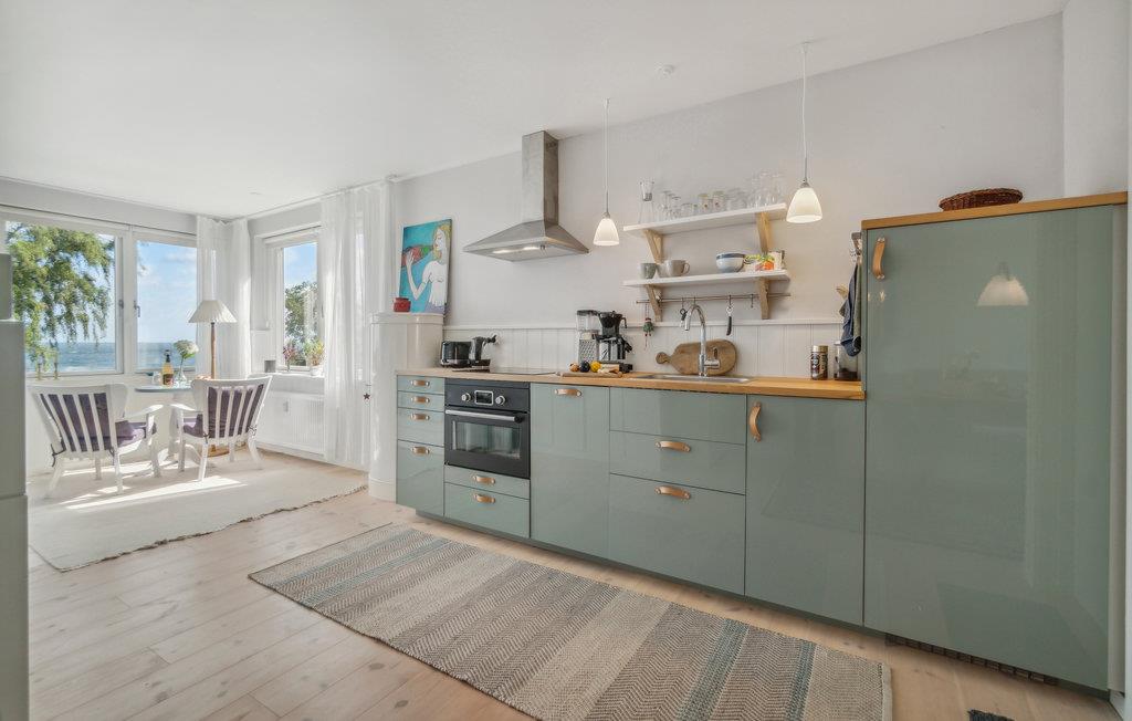 Der er fuld ferieidyl på programmet, for denne flotte, lyse lejlighed er den perfekte ramme om en parferie. I står op til den smukke udsigt over Østersøen og kan begynde dagen med et lille dyp. Dæk op til morgenmaden foran de store vinduer og mærk, hvordan roen automatisk sænker sig, når man kigger ud på det store blå. Med til ejendommen hører en romantisk lille gårdhave, som deles med de andre gæster. Her kan I sætte jer og grille på de lune sommeraftener.