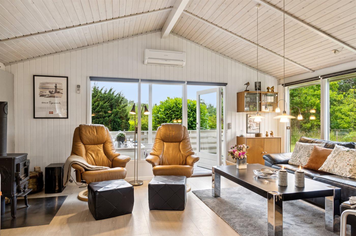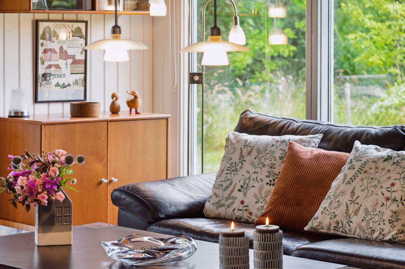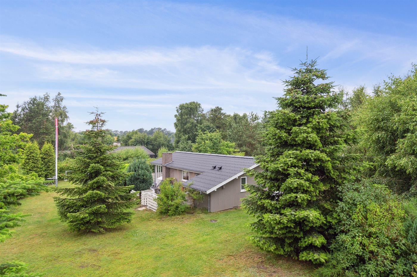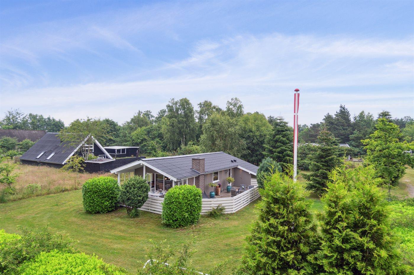 Beliggende i et naturskønt område i rolige og idylliske omgivelser er sommerhuset det perfekte sted at slappe af og nyde livet. Omkring huset findes masser af hyggekroge med læ, hvor I kan slappe af med en bog eller bare nyde stilheden og den friske luft. Med kun 300 meter til en børnevenlig og ren sandstrand, kan I nemt tage en svømmetur eller gå en tur langs kysten.