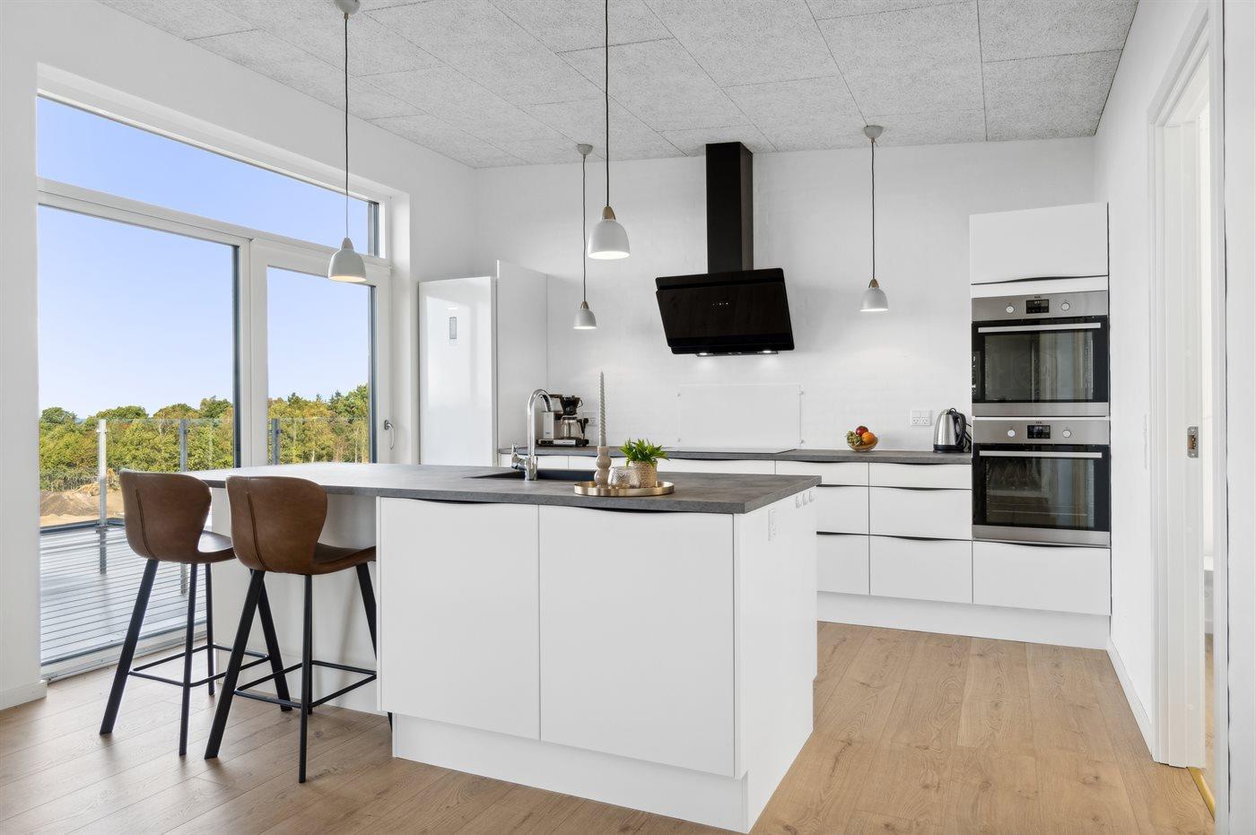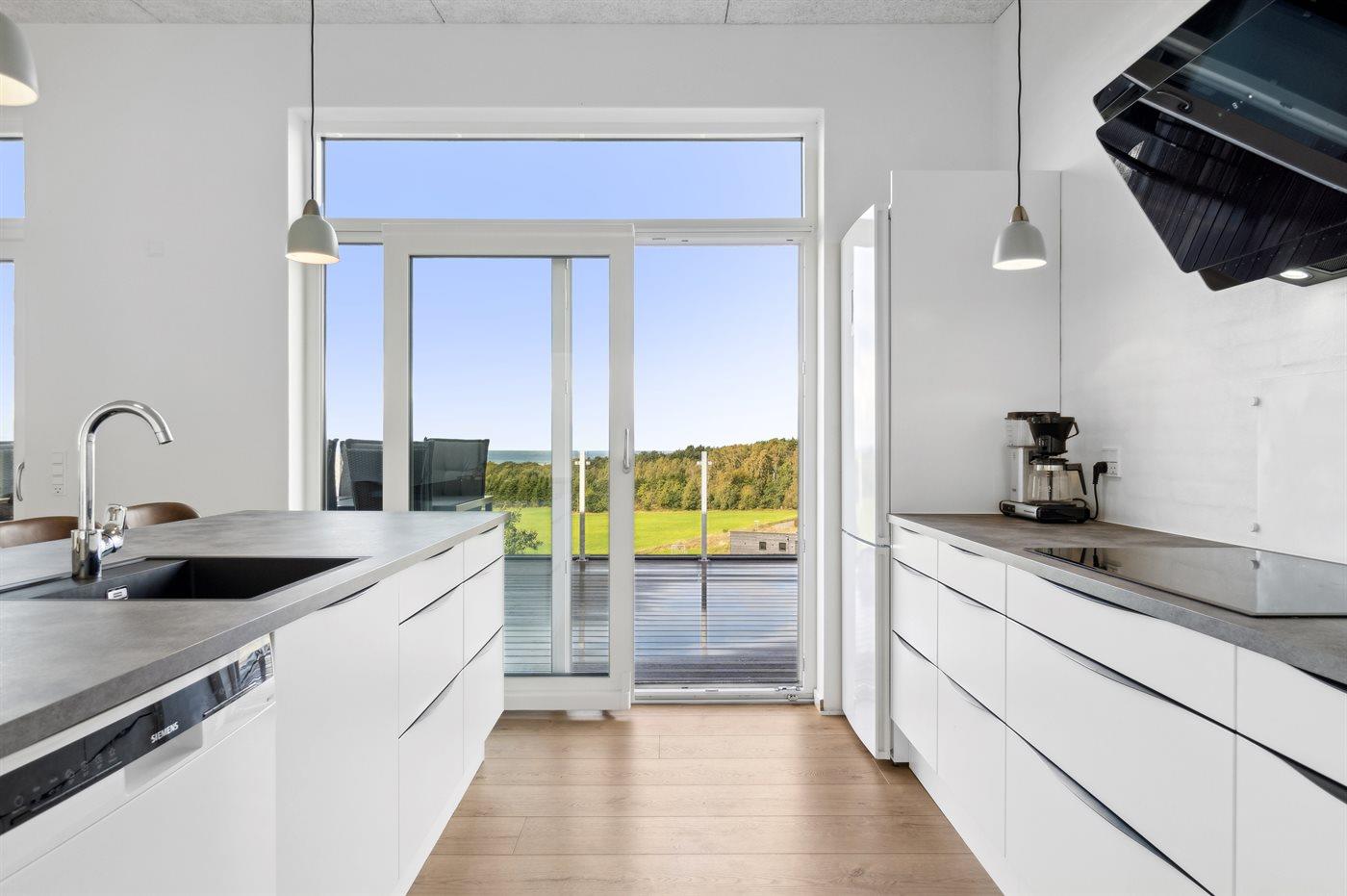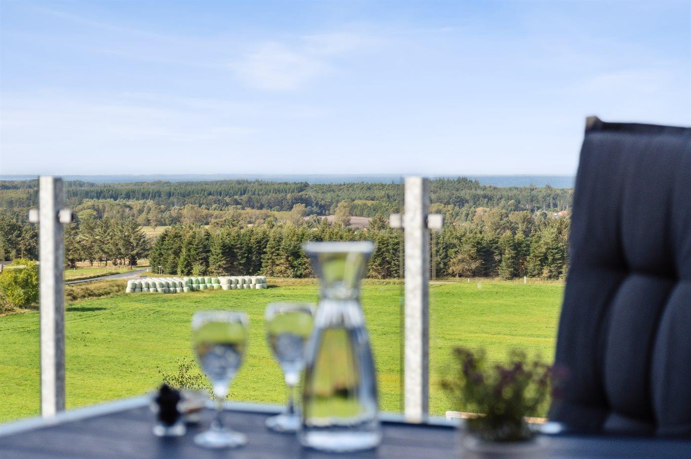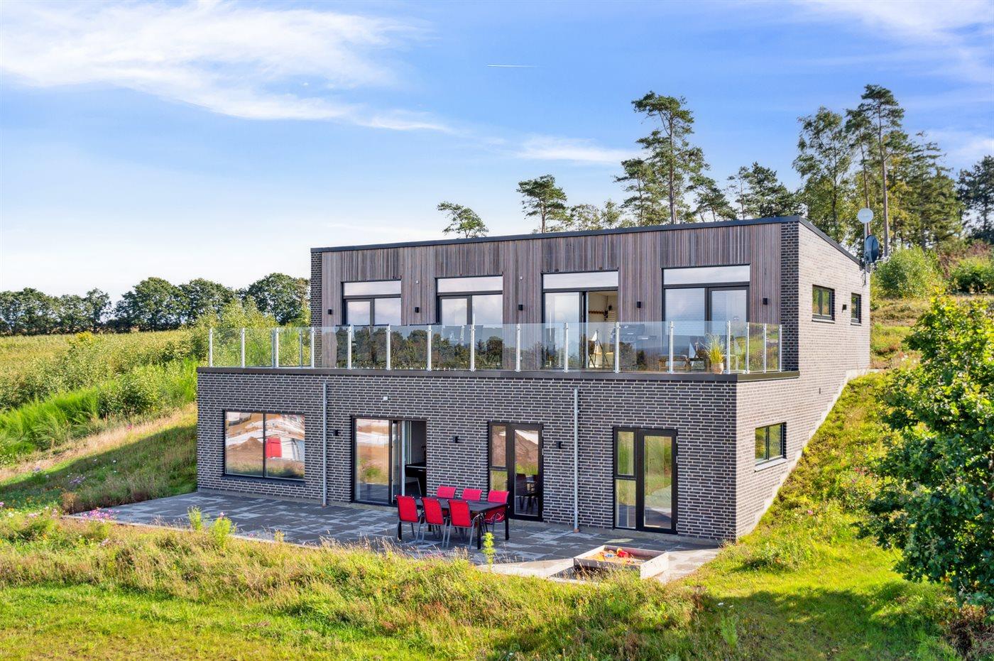 På toppen af en smuk bakke i Bønnerup ligger dette eksklusive sommerhus fra 2024, med plads til 12 gæster og en fantastisk panoramaudsigt over skoven og havet.