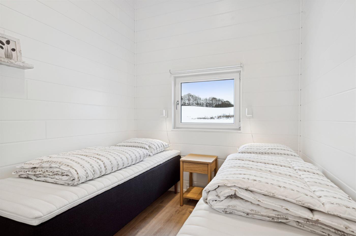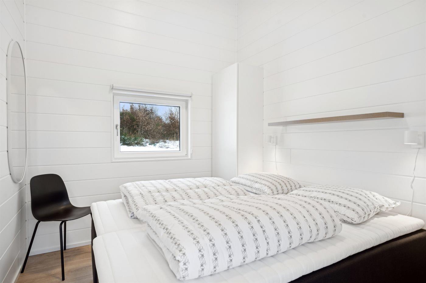 Der er i alt 7 soveværelser. Sovepladserne fordeler sig på: 8 sovepladser i dobbeltsenge. 2 sovepladser i enkeltsenge. 6 sovepladser i køjesenge. 6 sovepladser på madrasser. De 6 sovepladser på madrasser fordeler sig på 3 hemse. Derudover er der 1 stk. barneseng.