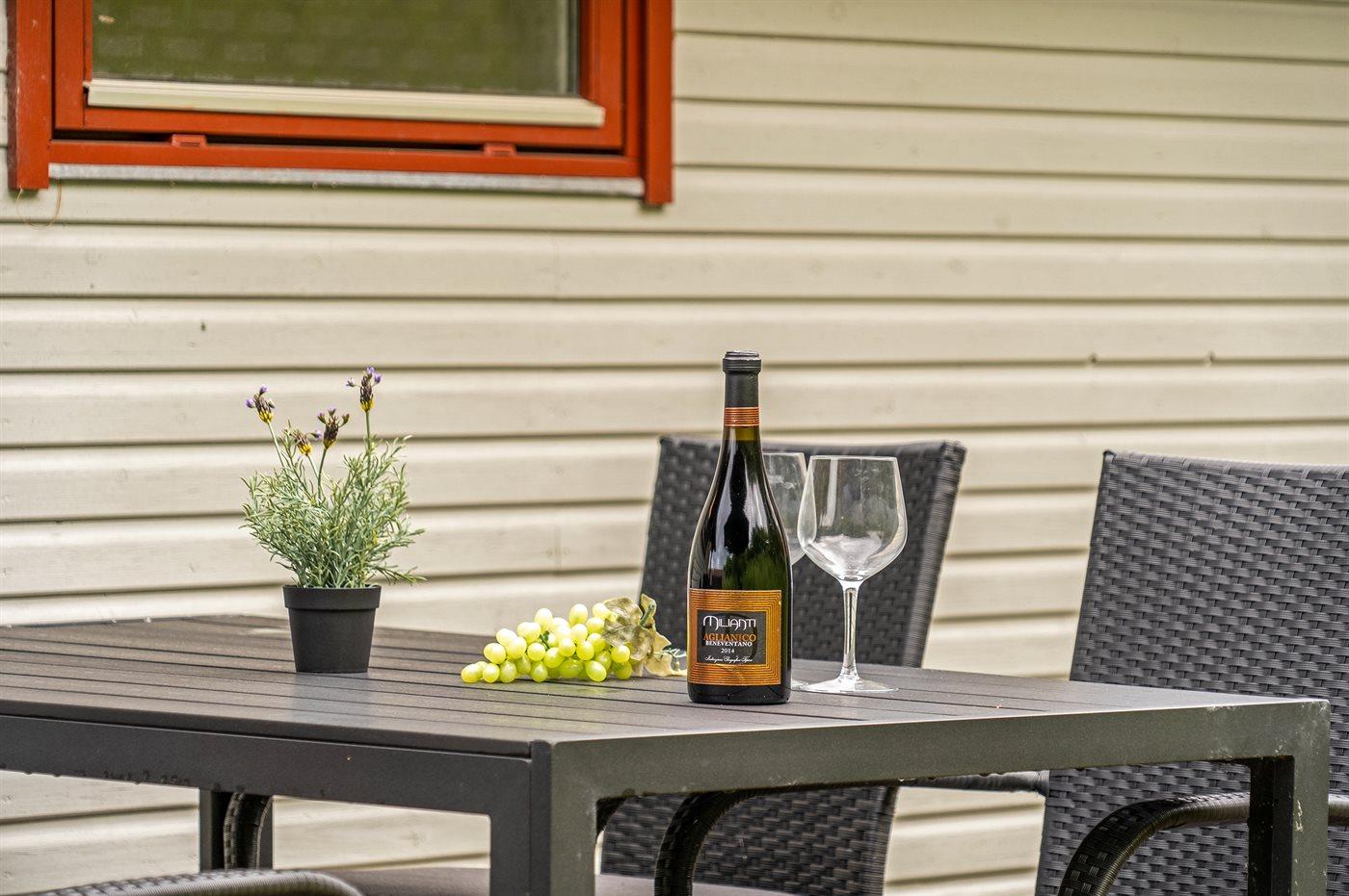 Ferieboligen er beliggende på en 1300 m² stor naturgrund. Der er 100 m til havet. Nærmeste forretning er beliggende i en afstand af 1500 m. Til ferieboligen hører 30 m² terrasseareal. Der er redskabsrum. Parkering ved ferieboligen.