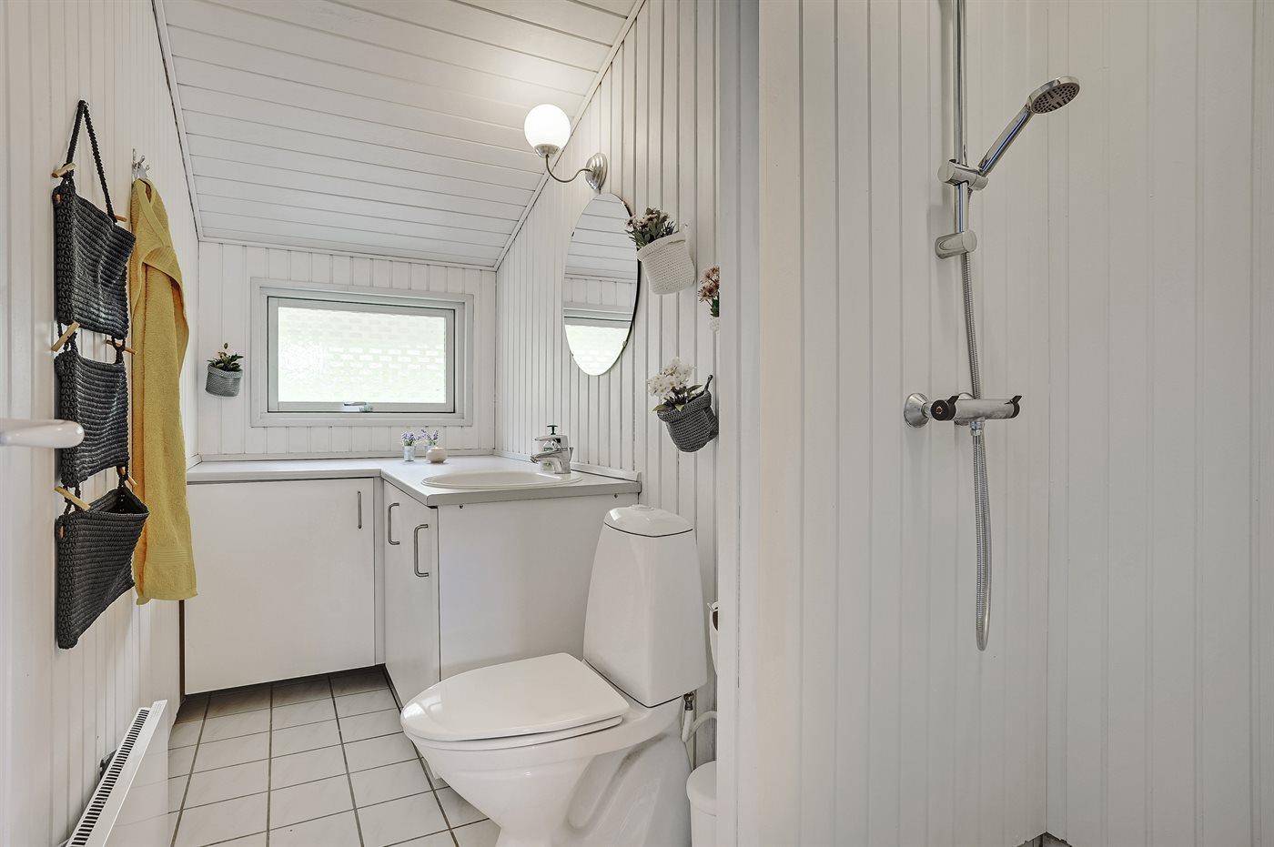 Der er 1 badeværelse med bruseniche og 1 toilet.
