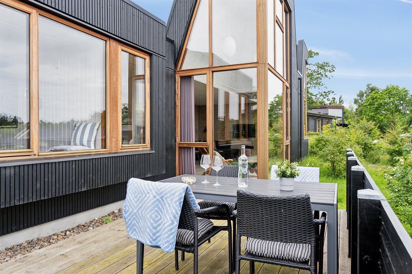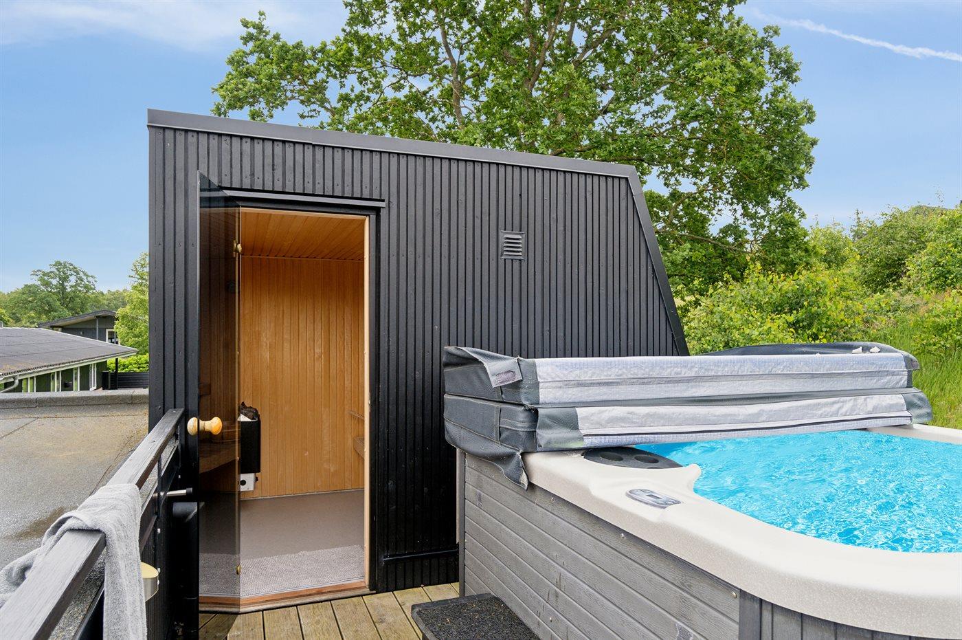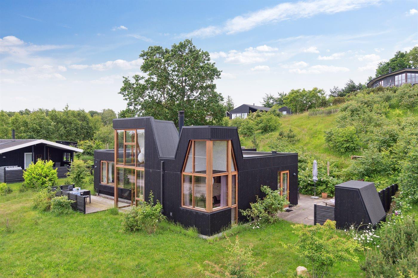 Et særdeles flot og helt nybygget sommerhus (2019) beliggende i et skønt ferieområde. Husets store køkkenalrum/stue er en oplevelse værd med spændende detaljer og med et godt lysindfald fra de store vinduer. På bagsiden af huset findes en trappe, som fører op til en udsigtsterrasse, hvor der findes en udendørs spa samt et saunahus. Fra både spa og sauna er der en flot udsigt over vandet