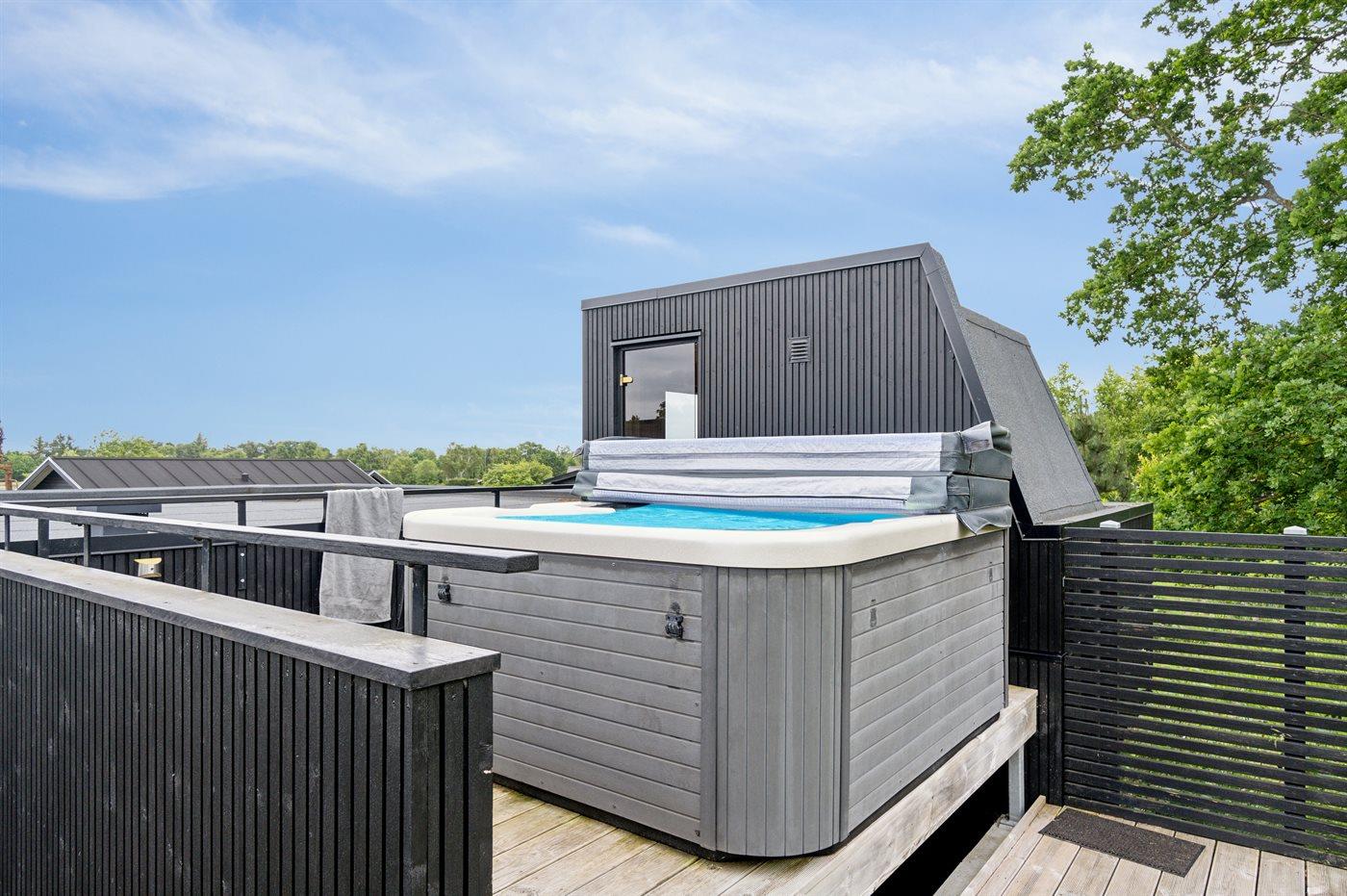 Der er mulighed for afslapning i udendørs standvandsspa til 5 personer.