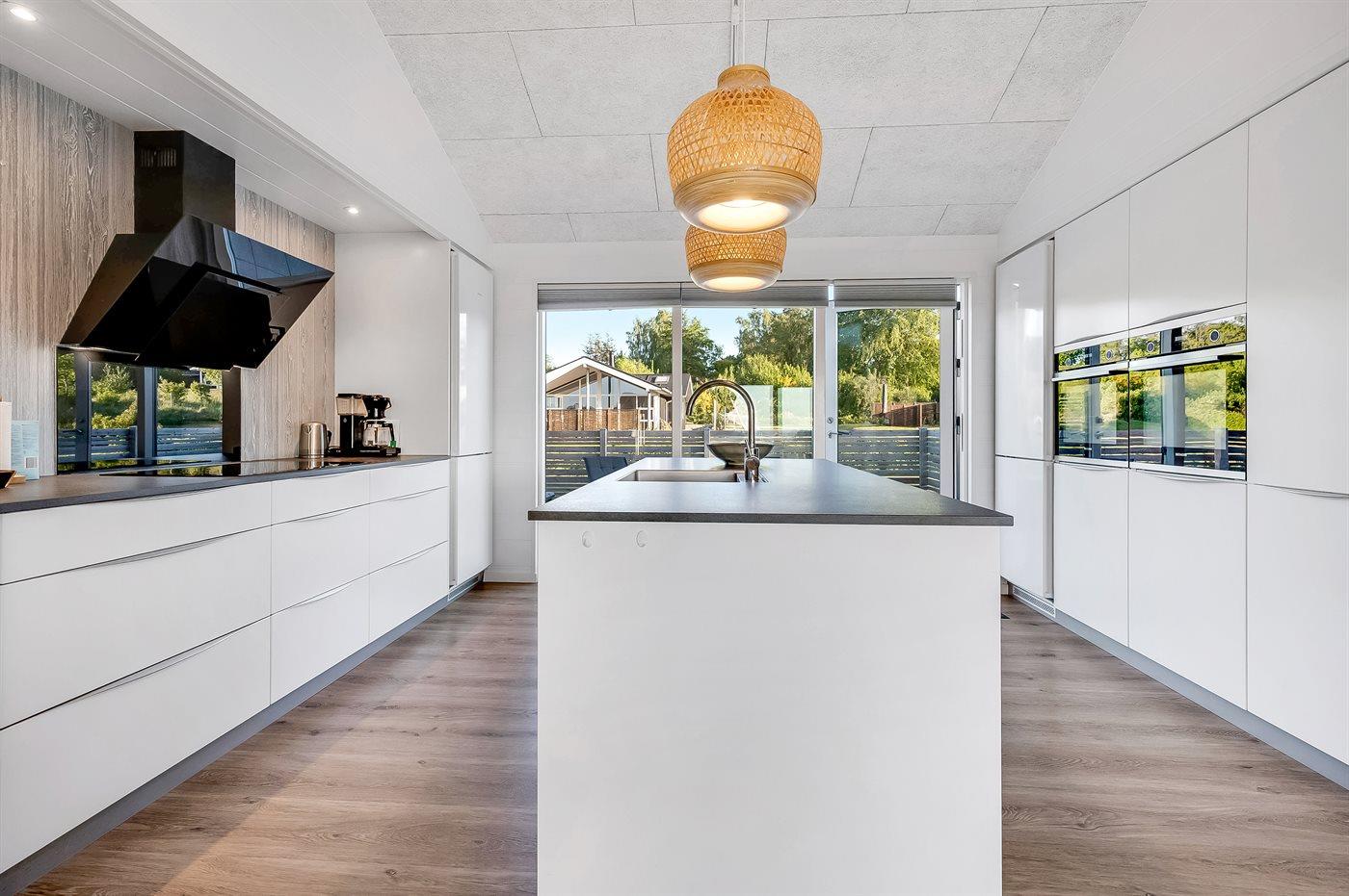 Sommerhuset fremstår perfekt fra ende til anden - med en rigtig god planløsning, hvorfor det er oplagt til f.eks. flere familier eller måske blot en familie, som ønsker en luksusferie. Husets hjerte er det skønne køkken/alrum og stue integreret i ét og, hvorfra den smukke udsigt over havet og området i særdeleshed kan nydes. Ja faktisk kan den flotte udsigt nydes fra langt de fleste steder inde i huset og ikke mindst fra de fantastiske terrasser, som ligger på begge sider af huset og, hvoraf den ene er delvist overdækket. På terrassen findes et stort og lækkert spabad med plads til 6 personer, hvori det er oplagt at sidde og nyde de naturskønne omgivelser.