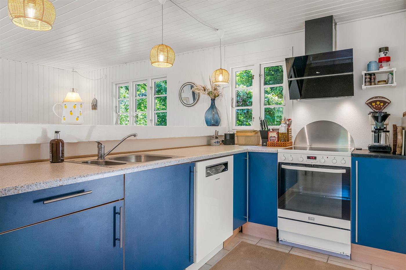 Huset passer rigtig fint til f.eks. en familie med børn eller blot et par, som ønsker at holde ferie i disse skønne omgivelser. Husets midtpunkt er køkken-alrummet, som er kombineret med opholdsstuen, hvor de store vinduespartier giver et virkelig godt lysindfald samt smuk udsigt til de grønne omgivelser. Der er fra stuen direkte adgang til den skønne terrasse. Ikke langt fra huset er der en fantastisk kuperet bøgeskov, hvor børnene kan bygge huler eller gynge i tov, ligesom hele familien kan gå en tur. Der går en hyggelig sti gennem skoven, som fører jer ned til havnen/byen.