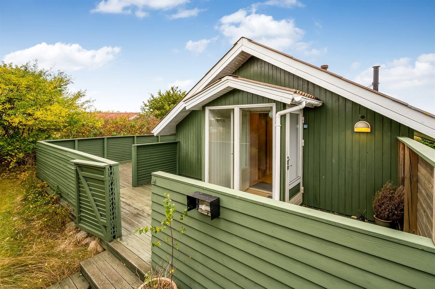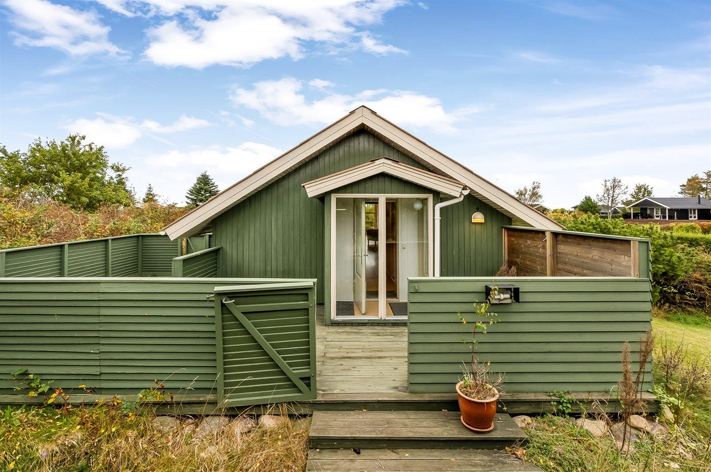 Sommerhuset ligger på en stor, dejlig grund med masser af plads til leg og hygge for børnene. Terrasserne, som delvist er overdækkede og findes på flere sider af huset, giver mulighed for at følge solen hele dagen, og man kan altid finde et hyggeligt hjørne i læ, hvor stilheden kan nydes fuldt ud. Fra én af terrasserne samt inde fra huset er der desuden en smuk udsigt til vandet.