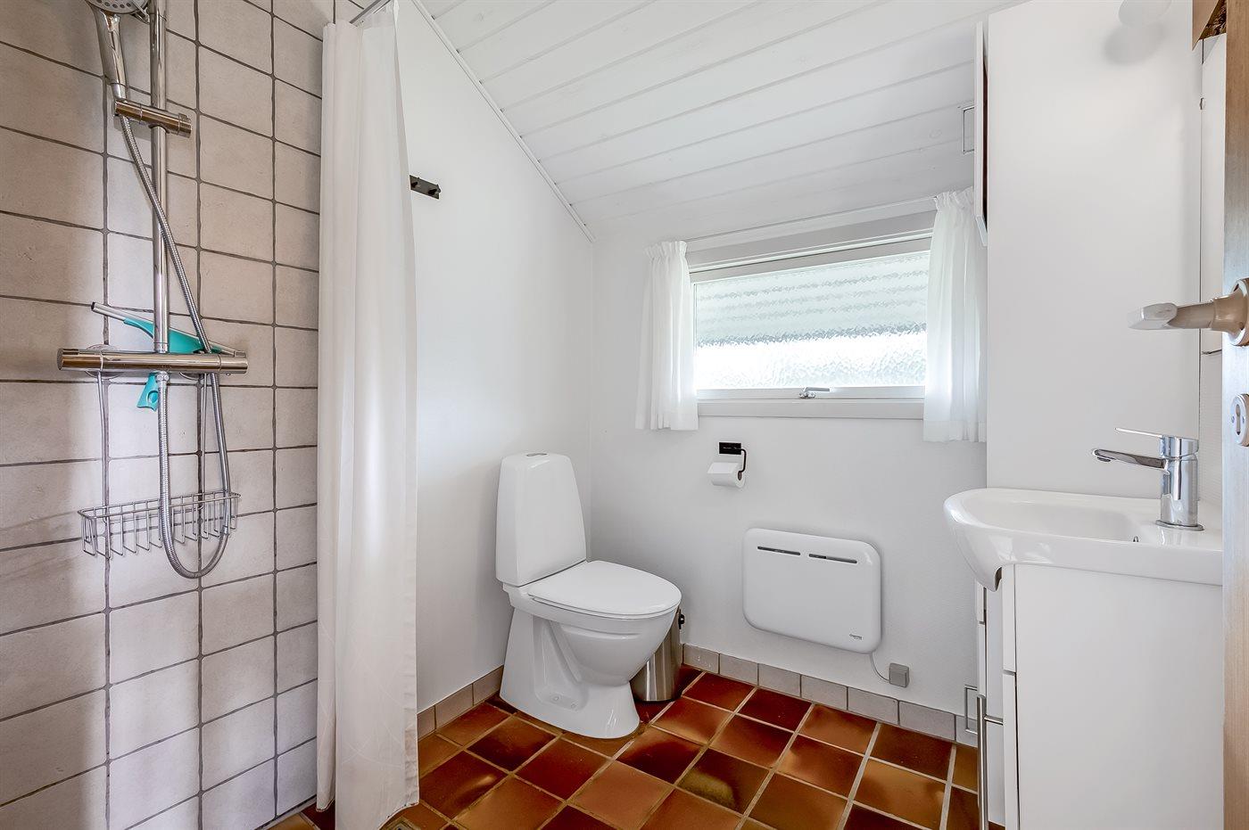 Der er 1 badeværelse med bruser og 1 toilet.