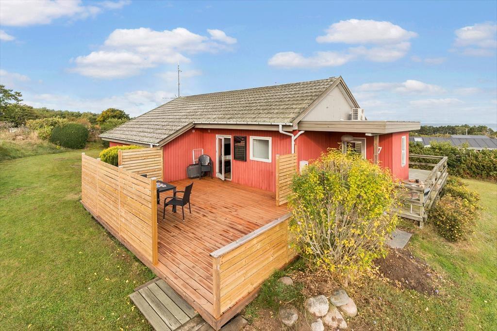 Og når I trænger til en frisk dukkert, ligger stranden kun 450 meter fra sommerhuset – tæt nok til en hurtig tur, men langt nok til at I kan nyde roen og privatlivet på terrassen.