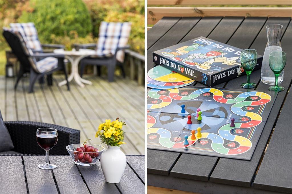 På terrassen står også lækre loungemøbler, hvor I kan synke ned med en bog, en kop kaffe eller bare lade blikket glide ud over Kattegats bølger. De puttede børn kan nemt høres fra terrassen, så I kan følge med i leg og liv, mens I nyder solen. På den anden side af huset gemmer sig en hyggelig solgård med nyt læhegn – et fredfyldt hjørne, hvor solen kan nydes i fulde drag.