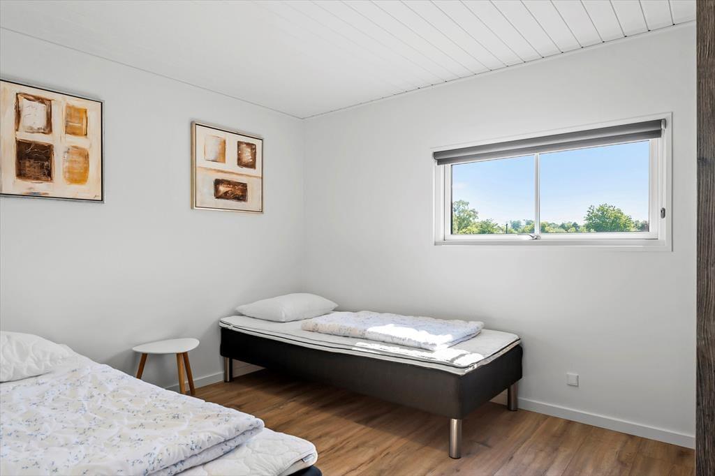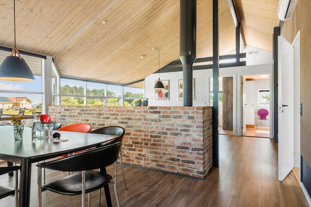 Velkommen indenfor: Velkommen til et herligt sommerhus, kun 180 meter fra den smukke og børnevenlige badestrand. Dette træsommerhus, som blev istandsat i 2020, tilbyder en fantastisk udsigt til havet fra de fleste af husets rum samt fra en af de 2 dejlige terrasser. Sommerhuset er indrettet i en unik newyorkerstil med modigt farvevalg, herunder et flot, rødt køkken. Den åbne og luftige planløsning skaber en rummelig og behagelig atmosfære. Badeværelset er udstyret med spa, perfekt til afslapning efter en dag på stranden. Huset rummer tre soveværelser - et med en dobbeltseng og to med to enkeltsenge i hvert værelse. Der er også madrasser på hemsen. Bryggerset indeholder både vaskemaskine og tørretumbler, hvilket gør det nemt at holde styr på vasketøjet under ferien. Dette sommerhus er ideelt til en familie eller en gruppe venner, der ønsker at nyde en afslappende ferie tæt på stranden med moderne bekvemmeligheder og en smuk havudsigt.