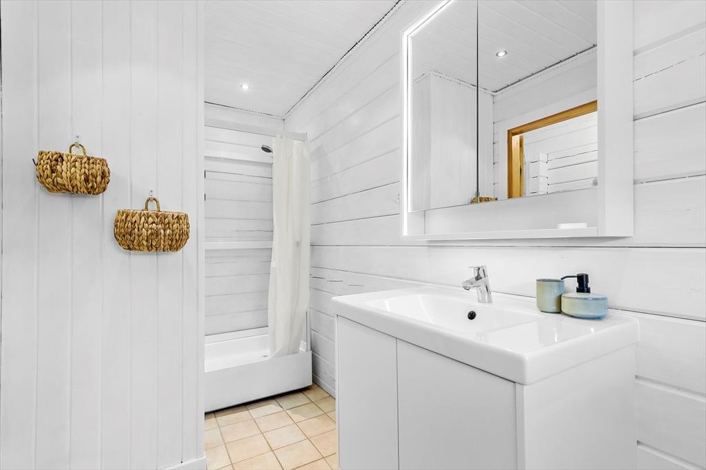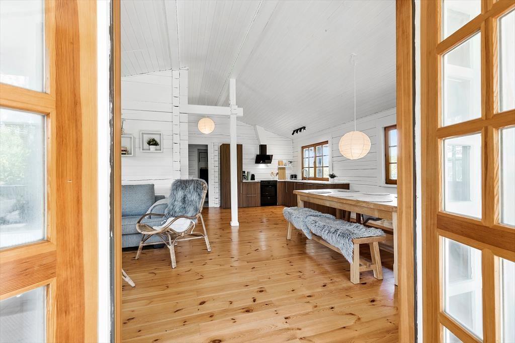 Velkommen indenfor Forestil dig et charmerende og lyst bjælkehus, hvor hyggen sidder i væggene, og der er plads til både afslapning og samvær. Huset, der blev opført i 2001 og nænsomt renoveret i 2023, emmer af stil og atmosfære. Når du træder ind, mødes du af en bolig, der kombinerer moderne komfort med klassisk sommerhusstemning – alt sammen smagfuldt indrettet for at skabe de perfekte rammer for din ferie. I husets ene ende finder du hjertet af hjemmet: et stort og indbydende rum, hvor et moderne køkken fra 2024 danner rammen om madlavning og hyggelige stunder. Her kan du snitte, stege og røre, mens du stadig er en del af samtalerne ved spisebordet eller i den hyggelige opholdsstue. Fra stuen åbner en dør sig ud til en skøn veranda, der hurtigt bliver dit foretrukne sted. Her kan du sætte dig godt til rette i komfortable møbler og lade tiden flyde, mens du fordyber dig i en god bog, nyder en kop kaffe eller spiller brætspil med familien – selv hvis regnen trommer let på taget. Når natten nærmer sig, venter to rummelige soveværelser med store, behagelige dobbeltsenge, der inviterer til en god nats søvn. Huset byder også på et veludstyret badeværelse med brusekabine og en praktisk entré, der gør det nemt at komme på plads efter dagens eventyr. Dette bjælkehus er ikke bare en feriebolig – det er et fristed, hvor minder skabes, og feriedrømme går i opfyldelse.