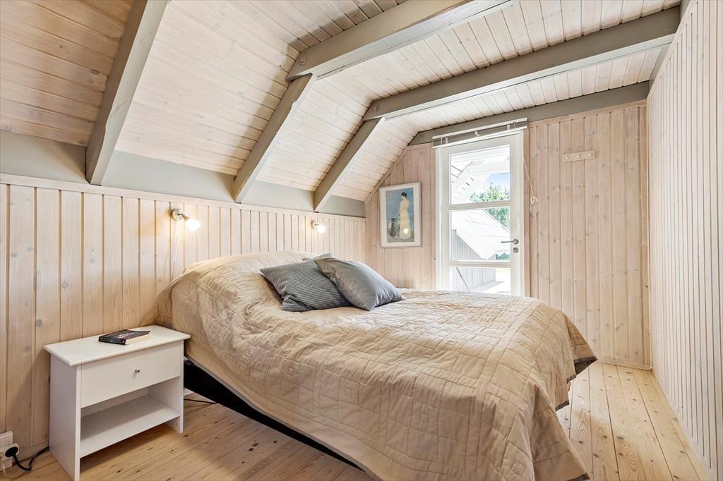 Velkommen indenfor: Træd ind i denne hyggelige familie oase, hvor hvert hjørne af det velholdte hus danner gode rammer for værdifuldt familiesamvær. Et sandt tilflugtssted, hvor roen hurtigt falder på, når I omfavnes af den dejlige atmosfære, der vækker minder om barndommens sommerhusferier. Gør dig klar til dagen med et frisk brusebad i det pæne badeværelse, inden du snupper den færdigbyggede kaffe fra køkkenet med på morgenterrassen. Her er parasollen slået op og børnene er allerede i fuld gang ned at lege i sandkassen, mens de glæder sig til strandturen i eftermiddag. Et glad, lyst og hyggeligt køkken med spisebordet tæt på og udgang til dejlig aftenterrasse samt 2 soveværelser. I stuen ovenpå danser solens stråler gennem vinduerne og I nyder udsigten og solnedgangen over havet i ”voksenhjørnet” efter, at de trætte feriebørn er puttet i det ene værelse lige neden under. De sover trygt i dobbeltsengen uden ben, så der ikke sker det store, hvis de skulle trille ud. I den anden ende af stuen ovenpå er der behagelig tv-afdeling med sovesofa. Herudover hyggeligt anneks med 2 gode enkeltsenge.