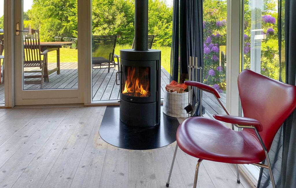 Velkommen til dette lyse og hyggelige feriedomicil, hvor I kan nyde en rolig pause midt i en rummelig have. Tilbered jeres livretter i køkkenet, tænd op i brændeovnen, fordyb jer i en god bog på sofaen, eller nyd den rolige atmosfære ved en hyggelig spilleaften.