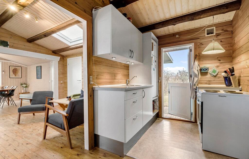 Tag en velfortjent pause fra hverdagen og rejs til Djursland, hvor I på den nordlige side finder en herlig base i dette fine feriehus. Boligen er flot indrettet med masser af træelementer, højt til loftet og varme farver, der gør det nemt at sænke skuldrene og komme ned i tempo. Det åbne opholdsrum får et flot lysindfald og en dejlig udsigt gennem vinduespartierne og indbyder til mange hyggelige stunder i godt selskab. Tænd op i brændeovnen på de køligere dage og tag jer god tid til madlavningen og til fællesmåltiderne, inden I runder aftenen af i sofaen med brætspil eller en god film.