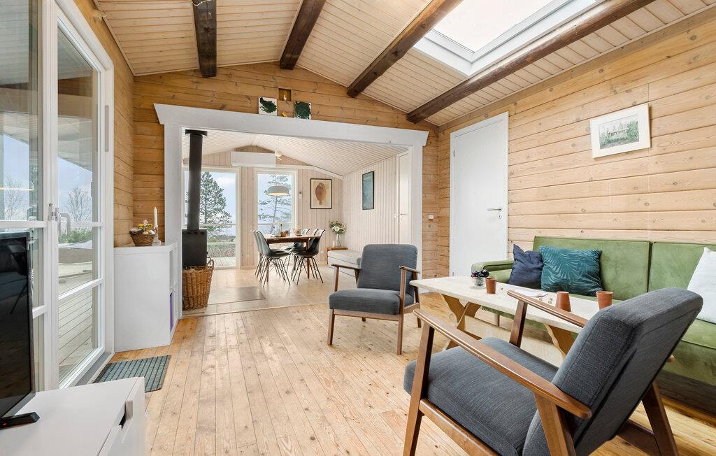 Glæd jer til en herlig ferie få skridt fra Kattegat i dette indbydende træhus ved Bønnerup Strand.