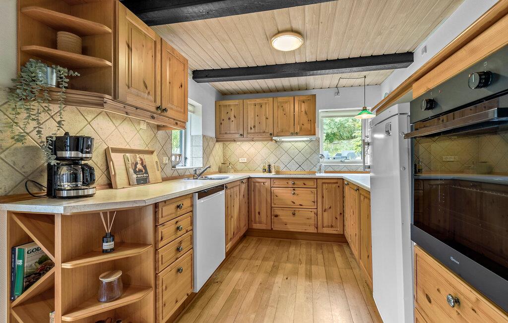 Hvis I er på udkig efter en hyggelig og familievenlig bolig til ferien, er dette skønne hus på det nordlige Djursland det helt rette valg. Udvendigt prydes huset af bindingsværk og stråtag, og indvendigt fremtræder det yderst charmerende med varme træpaneler, pæn kunst på væggene og et komfortabelt møblement, man virkelig kan slappe af i. Når vejret bider lidt, kan I tænde op i brændeovnen, hvis varme knitren er det perfekte lydtapet til sofahyggen om aftenen med hver jeres bog eller en god film på tv'et.