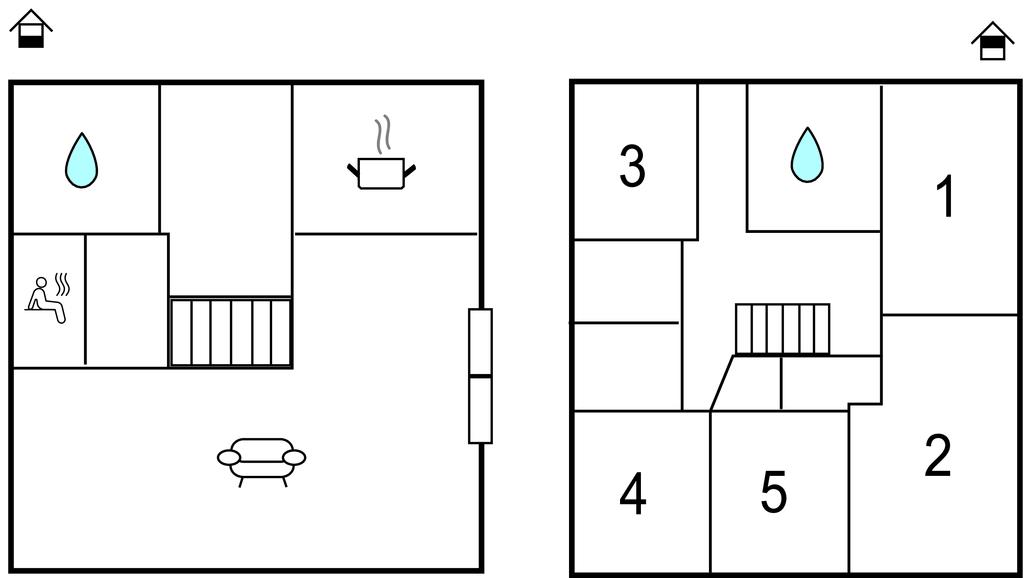 Huset, som har en spændende arkitektur, er bygget i to etager. Det er godt udstyret med bl.a. spabad og sauna, ligesom det også er velindrettet med bl.a. fem soverum, alle med dobbeltsenge og to badeværelser.