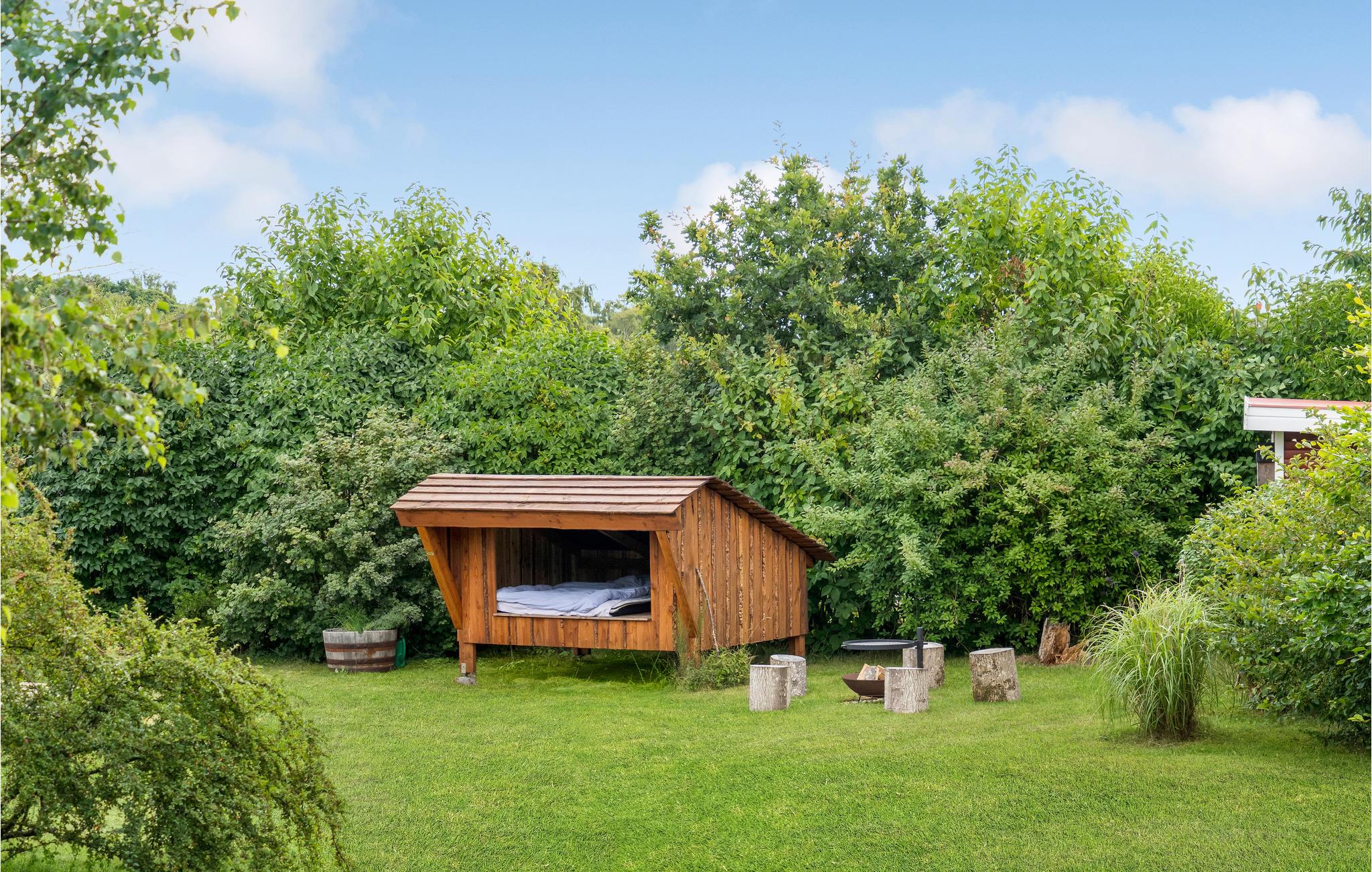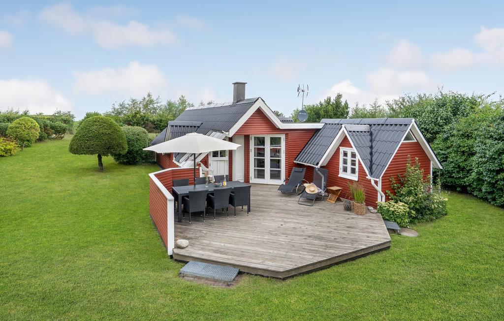 Huset er meget indbydende med lækre indretningsløsninger, der gør jeres feriedage ekstra behagelige. Nyd lyset, som strømmer ind fra mange vinkler i alle rum og læn jer tilbage i fine, lette stil, der kendetegner den klassiske feriebolig, Fra stuen og køkkenet er der udgang til terrassen, som er skærmet af på tre sider, så her kan I sidde og slappe af i solen efter en lang gåtur på stranden eller en dag fyldt med eventyr. Børnene kan løbe og lege på græsplænen, og dem, der er glade for udendørsoplevelser kan tage en overnatning i shelteret på grunden.