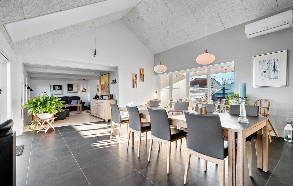 Lad jer begejstre af det lyse og åbne boligkoncept i jeres komfortable feriehus. Lav mad sammen i det topmoderne køkken, og nyd jeres måltider i den hyggelige spisestue. Tænd op i brændeovnen, og lyt til den knitrende ild med en god bog, stream en spændende serie, eller afhold en hyggelig spilleaften i den komfortable sofa.