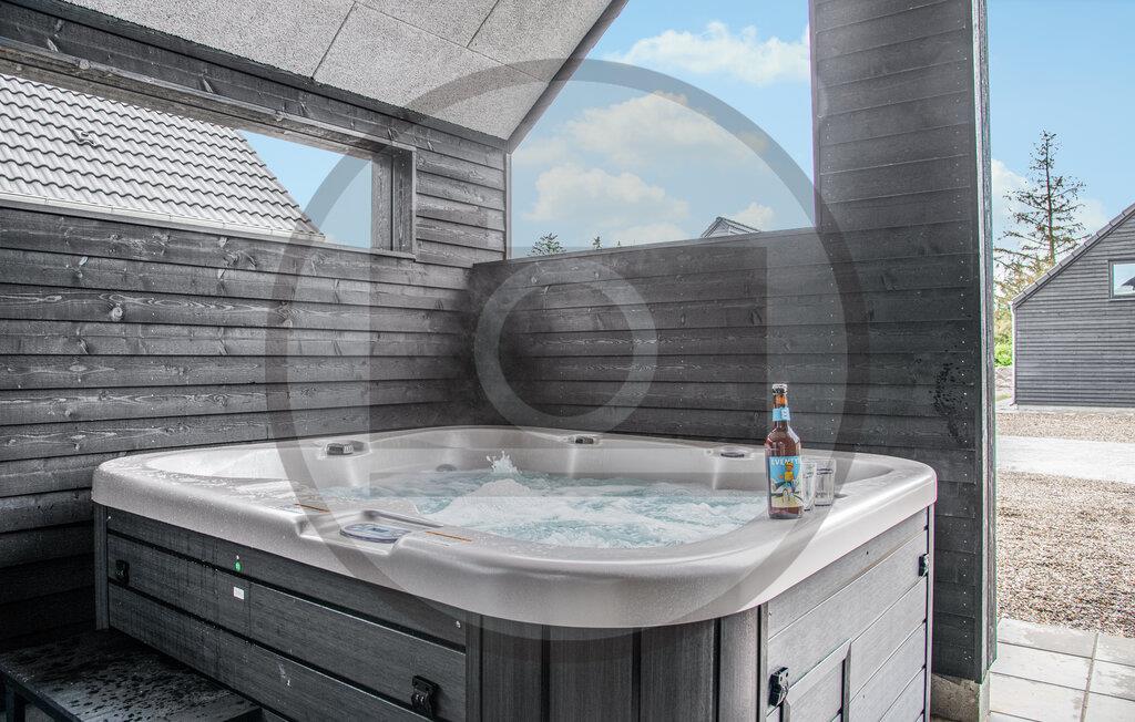 Hyggelig hotelhytte med spabad nær stranden