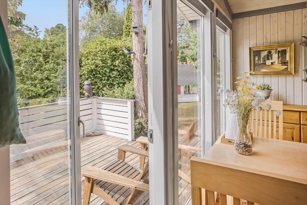 Indhegnet ugenert grund på ca. 1.000 m² med legehus, lukket solgård, havepavillon, gynger, sandkasse, liggestole og hængekøje, vildmarksbad.