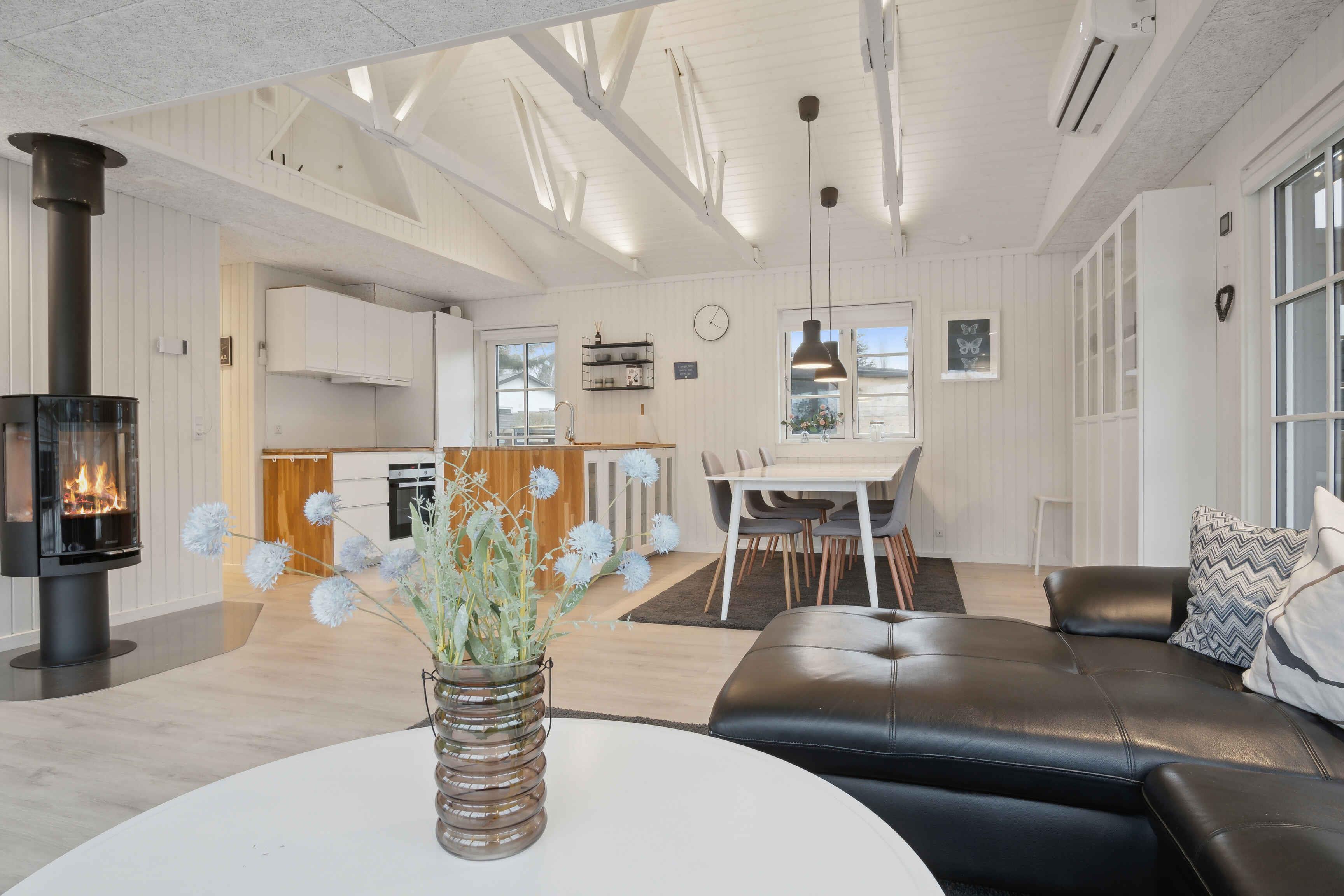 Velkommen til vores skønne sommerhus i nordisk stil, beliggende i Høll, Børkop – kun 300 m fra en dejlig strand! Huset på 80 m² 18 m² anneks har plads til 8 gæster 1 babyseng.