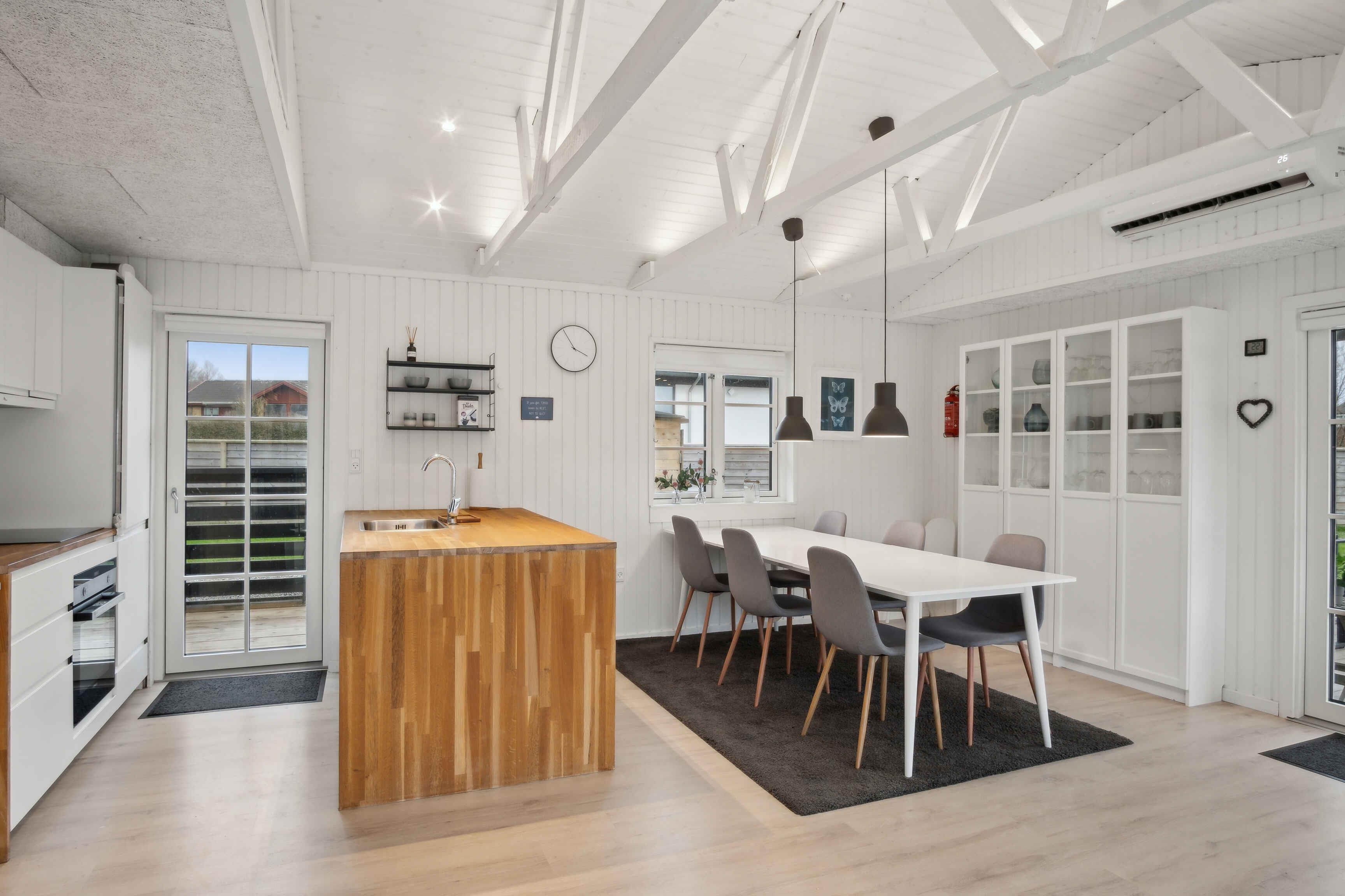 Dette sommerhus er mere end bare et sted at bo – det er et sted at være. Her er masser af plads til råhygge, lange gåture ved stranden, ro i haven og tid med dem, du holder af. Det perfekte sted for både familier og venner, der ønsker at skabe minder i en skøn, nordisk ramme. Køkken-alrum: Det store og åbne køkken-alrum er hjemmets hjerte, med plads til både madlavning og hyggestunder. Fuldt udstyret med opvaskemaskine, mikroovn og alt, du har brug for til madlavning. Direkte adgang til terrassen, hvor måltider kan nydes i solen. Stue: En lys og indbydende stue med store vinduer, der giver et smukt udsyn til haven. Nyd aftenerne foran den nye pejs (brænde kan tilkøbes) eller lad sollyset fylde rummet om dagen. Badeværelse: Holdt i lyse, nordiske toner med gulvvarme og en rummelig brusekabine – det perfekte sted at starte eller slutte dagen. Entre/gang: Praktisk indrettet med vaskemaskine og masser af skabsplads til opbevaring. Soveværelse: Dobbeltseng. En baby-gæsteseng kan bestilles. Værelse: Komfortabel køjeseng (2x90x200), perfekt til børn eller voksne. (Nye dyner puder januar 2025) Annekset: Et hyggeligt og funktionelt anneks, der kan rumme op til 4 personer: • Dobbeltseng (140 cm). • Køjeseng 2 x (90x200). (Nye dyner & puder januar 2025) Udendørsområder: En stor træterrasse omgiver huset og skaber mulighed for at finde både sol, skygge og læ hele dagen. Haven: En blød og velplejet græsplæne, perfekt til leg, boldspil eller bare afslapning. Faciliteter: Havemøbler, udendørsbruser og masser af plads til at nyde naturen. Parkering: God plads i indkørslen med plads til op til 5 biler. Beliggenhed: Med sin placering i Høll, Børkop, mellem Vejle og Fredericia, er sommerhuset det perfekte udgangspunkt for både afslapning og oplevelser: • 300 meter til stranden. • 3 km til nærmeste supermarked. • Køretider: • 10 min til Fredericia. • 20 min til Vejle. • 30 min til Kolding. • 40 min til Billund (Legoland, Lalandia og lufthavn). El-ladestander • 11 kW, type 2 . Husk medbring eget lade-kabel Obs, udlejes ikke til erhversmæssigt brug.