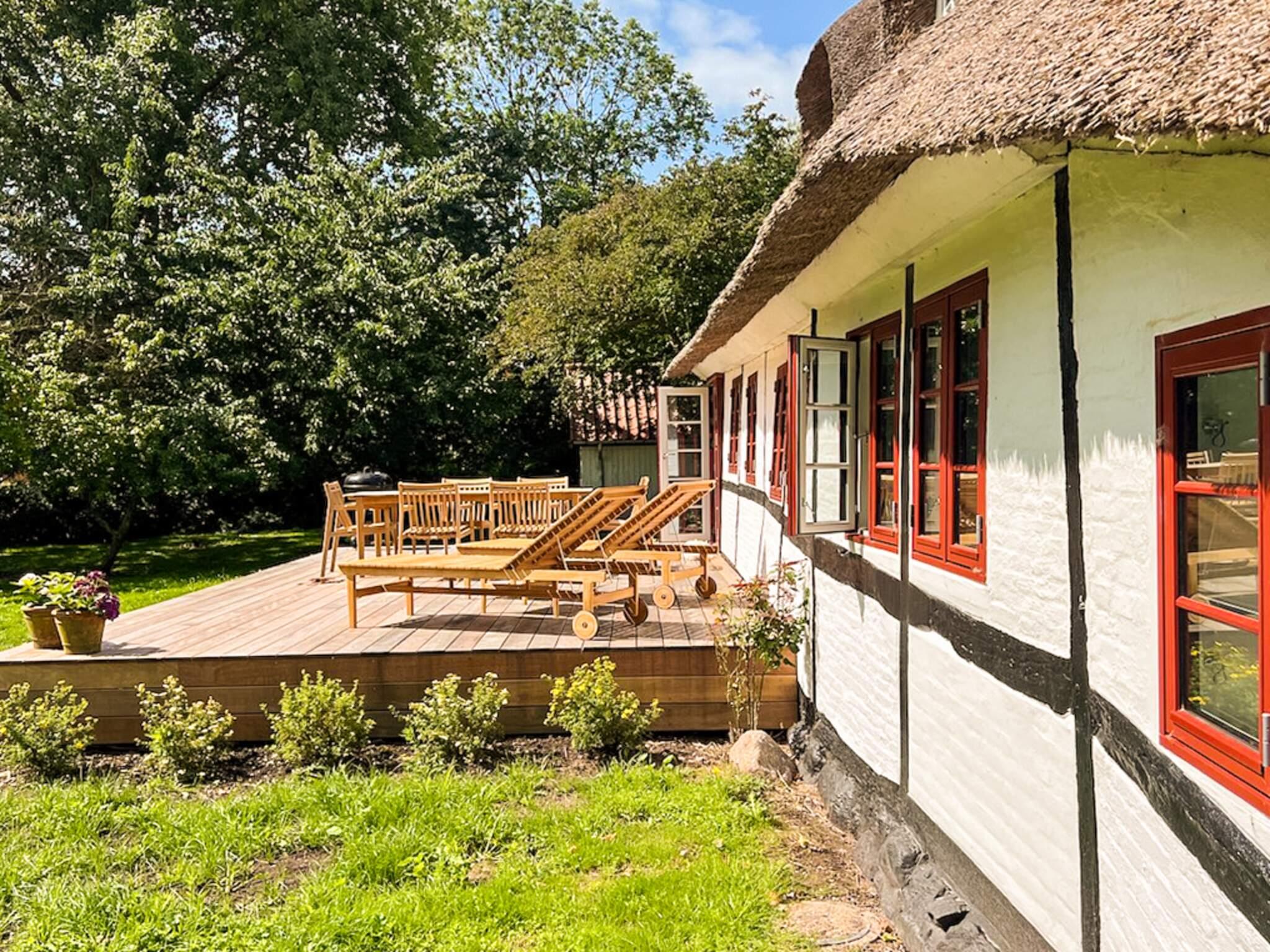 Oplev denne idylliske gård med stråtag, der ligger på en stor, afsondret naturgrund i det naturskønne Sydlangeland. Huset ligger i udkanten af Bagenkop, en lille, men livlig landsby med en charmerende atmosfære. På trods af sin størrelse byder Bagenkop på en fantastisk oplevelse med en aktiv havn, fantastiske fiskehandlere, en hyggelig kro og en velassorteret købmand kun 485 meter væk. Den dejlige sandstrand i Bagenkop ligger kun få minutters gang væk (653 m) og er det perfekte sted at svømme eller gå en tur. Med en lokal restaurant kun 297 meter fra din dør er alt, hvad du behøver for en afslappende ferie, inden for rækkevidde. Dette rummelige 87 m² store sommerhus er perfekt til en stor familie eller gruppe og tilbyder soveplads til op til otte gæster fordelt på tre soveværelser og et lille anneks. Hovedhuset har to dobbeltsenge og to enkeltsenge, mens annekset har to ekstra enkeltsenge for ekstra plads og privatliv. Hjemmets hjerte er det store kombinerede køkken/stueområde med en hyggelig brændeovn, et tv og en dvd-afspiller til aftenunderholdning. Det funktionelle køkken har elkomfur, køleskab og kaffemaskine. Der er et enkelt badeværelse med bruser, som sikrer et behageligt ophold. Ejendommen udmærker sig virkelig med sine udendørs faciliteter, der ligger på en massiv, afsondret 6000 m² naturgrund omgivet af marker og spredte træer, hvilket giver dig fuldstændig privatliv. Nyd solrige eftermiddage på terrassen med de medfølgende havemøbler, der er perfekte til at tænde op i kulgrillen til en sommerbarbecue. Praktiske faciliteter omfatter elvarme, og kæledyr er velkomne under dit ophold. På grund af stedets rolige beliggenhed skal du være opmærksom på, at sommerhuset ikke kan lejes af ungdomsgrupper. Kom og nyd den karakteristiske og smukke natur, som Sydlangeland har at byde på.
