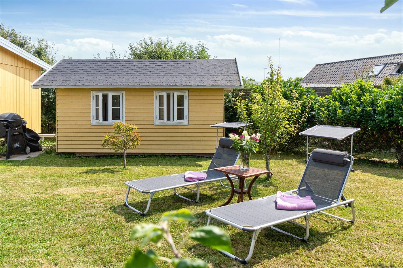 Ferieboligen er beliggende på en 386 m² stor havegrund. Der er 25 m til havet. Nærmeste forretning er beliggende i en afstand af 125 m. Til ferieboligen hører åbent terrasseareal. Ligeledes er der adgang til udestue. Der ligger en legeplads i en afstand af 230 m. Grill til rådighed. Parkering ved ferieboligen.