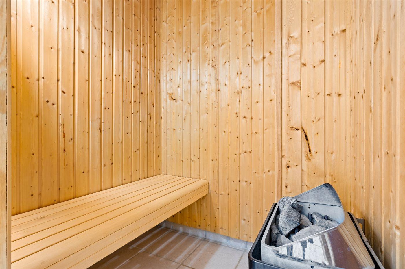 Der er 1 badeværelse med bruseniche og 2 toiletter, heraf 1 gæstetoilet. Der er gulvvarme på 2 badeværelser. I saunaen er der mulighed for afslapning.