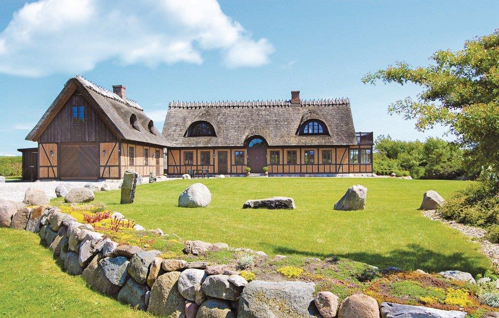 Flot stråtækt feriehus på Langelands sydspids med naturgrund, tæt på klinter, skove og fuglereservat.