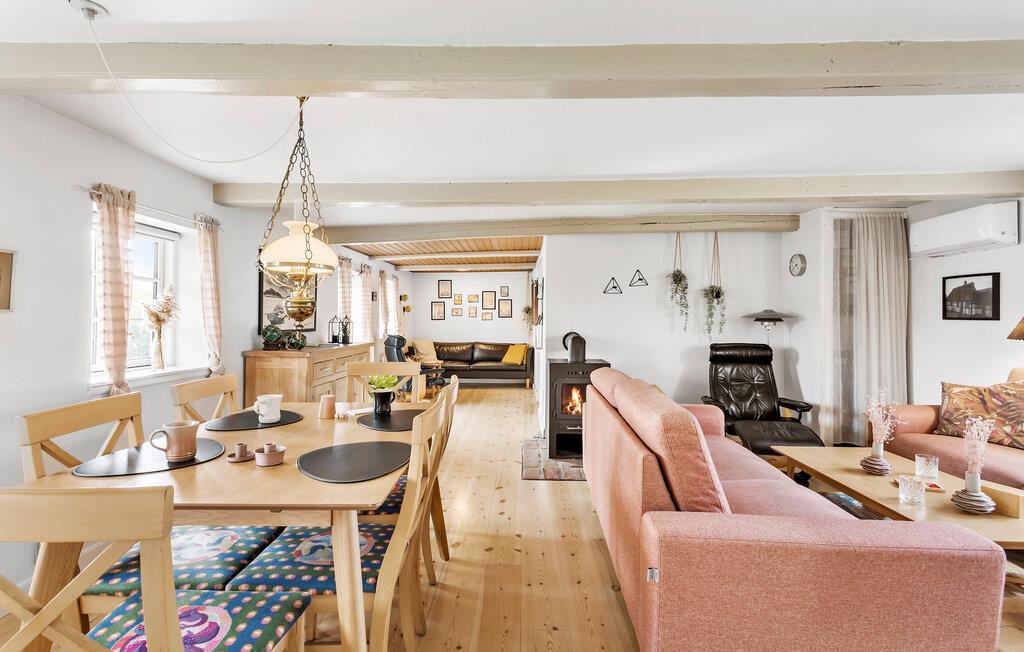 Tag familien under armen og rejs til Langeland, hvor I få skridt fra stranden får base i dette hyggelige bindingsværkshus. Ude som inde fremtræder huset virkelig charmerende, og indretningen prydes af varme træelementer, gode møbler og en brændeovn, der giver varme og stemning, når vejret bider lidt. Lad familiens kokke kræse om livretterne i det varme køkken, mens andre hygger sig med en god bog eller dækker op ved spisebordet. Efter aftensmaden kan I lade aftenen gå på hæld med snacks, brætspil og et godt glas vin, mens I lægger planer for de kommende dage.