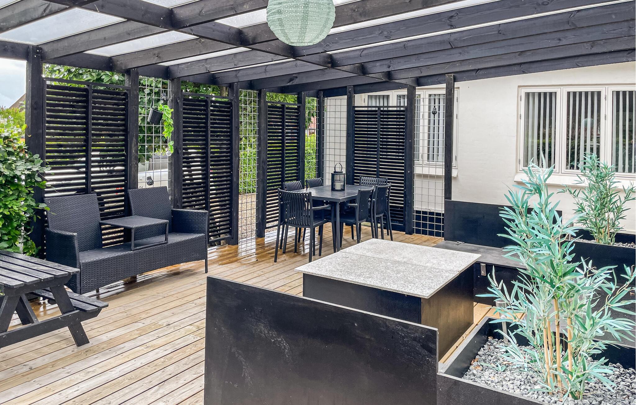 Udeområdet lægger op til at samles om måltiderne og hygge sig i al slags vejr. Server en lækker morgenmad i solen, lad børnene nyde legefaciliteterne og hold stemningsfulde grillaftener på den rummelige, overdækkede terrasse.