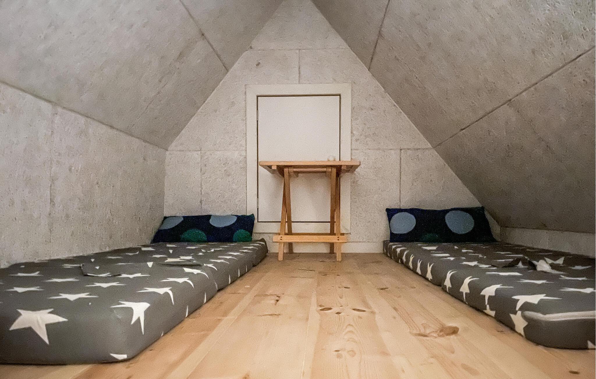 Soveværelse (nr. 1) - 1 Soveplads. (Enkeltseng(e)). 2 Sovepladser. (Dobbeltseng(e)).