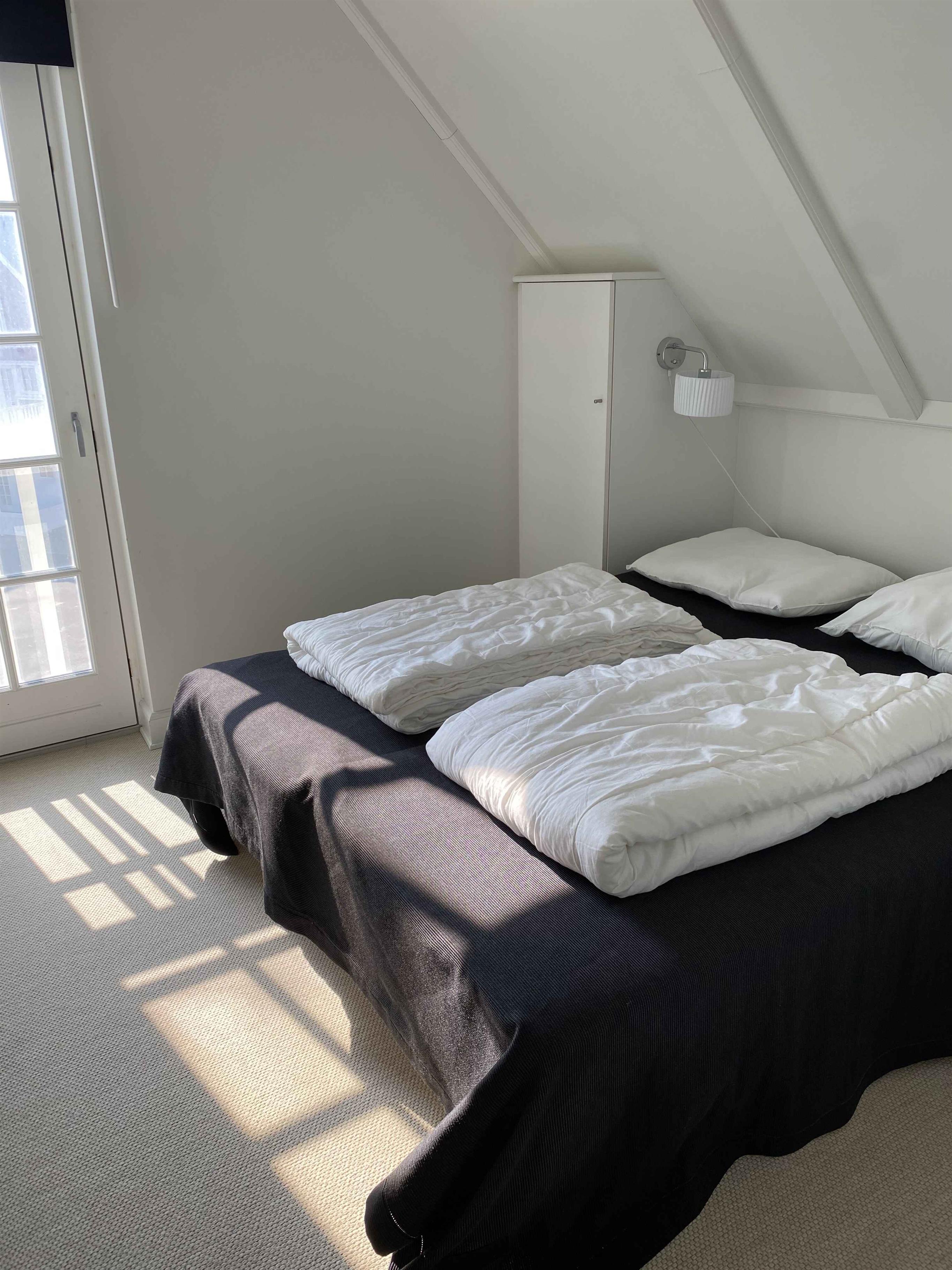 Med tre soveværelser og to badeværelser er lejligheden egnet for familier eller to par, der ønsker at nyde en ferie ved skov og strand tæt på naturskønne områder. Der er en terrasse mod havnen med morgensol og en terrasse mod havet med aftensol.