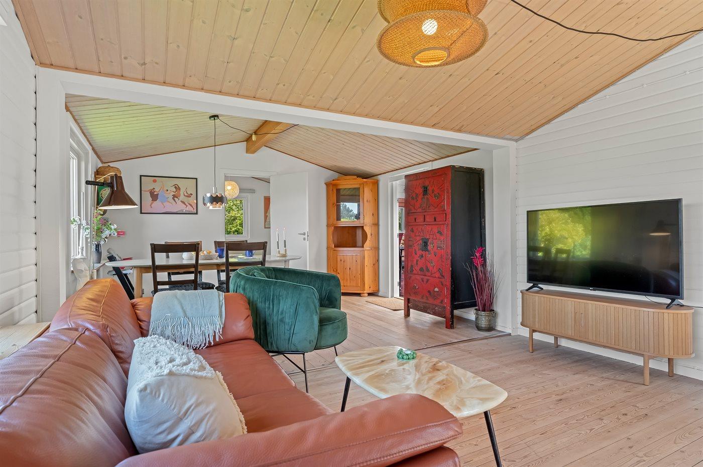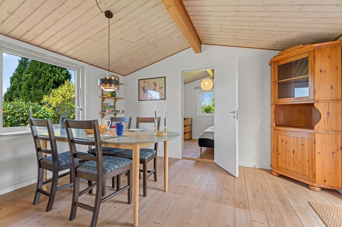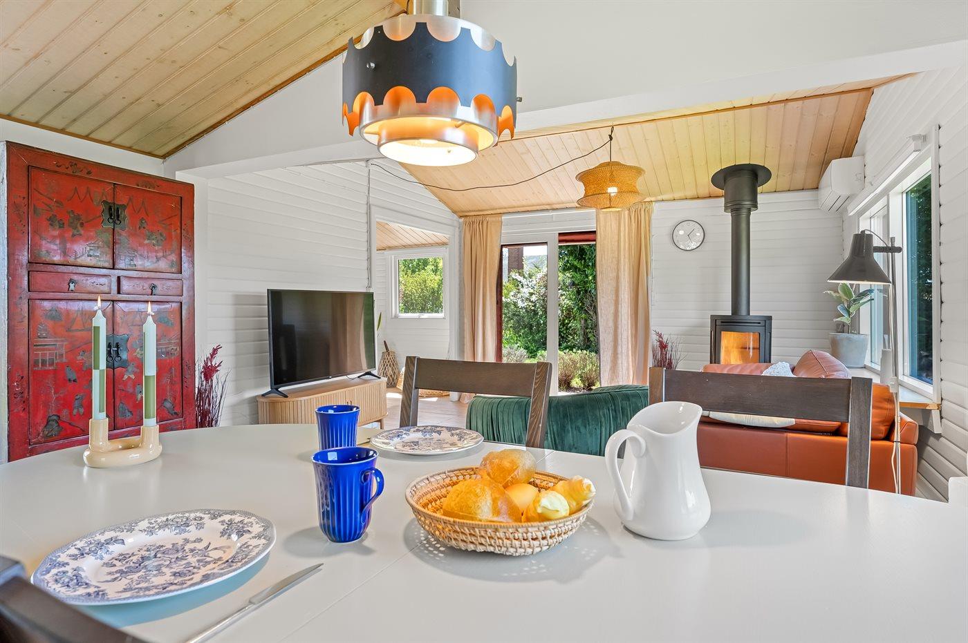 Feriehuset er indrettet med en masse familiehygge for øje. Dejlig stor stue med plads til hygge og leg, sofaafdeling og spiseområde til det store spisebord. To soveværelser med hver sin dobbeltseng. Hyggeligt køkken og selvfølgelig separat badeværelse og toilet.
