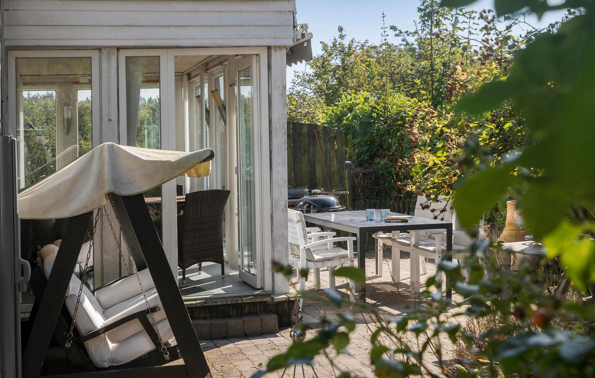 Udendørs byder sommerhuset på en rummelig naturgrund, som er ideel til leg med børnene eller ren afslapning i de rolige omgivelser.