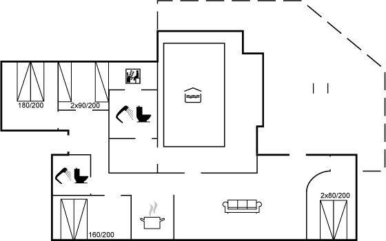 Der er i alt 4 soveværelser. Sovepladserne fordeler sig på: 6 sovepladser i dobbeltsenge. 2 sovepladser i enkeltsenge. Derudover er der 1 stk. barneseng.