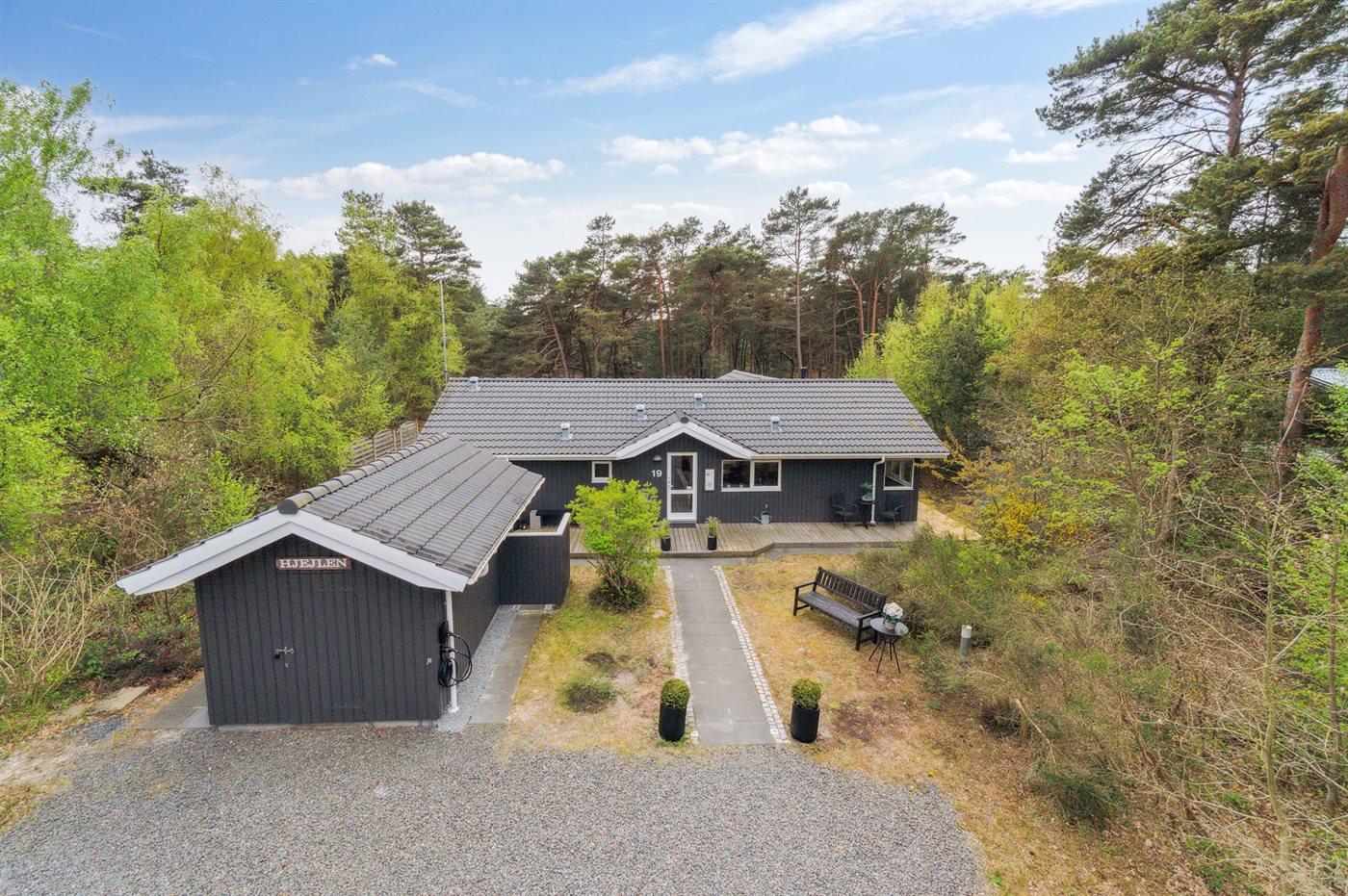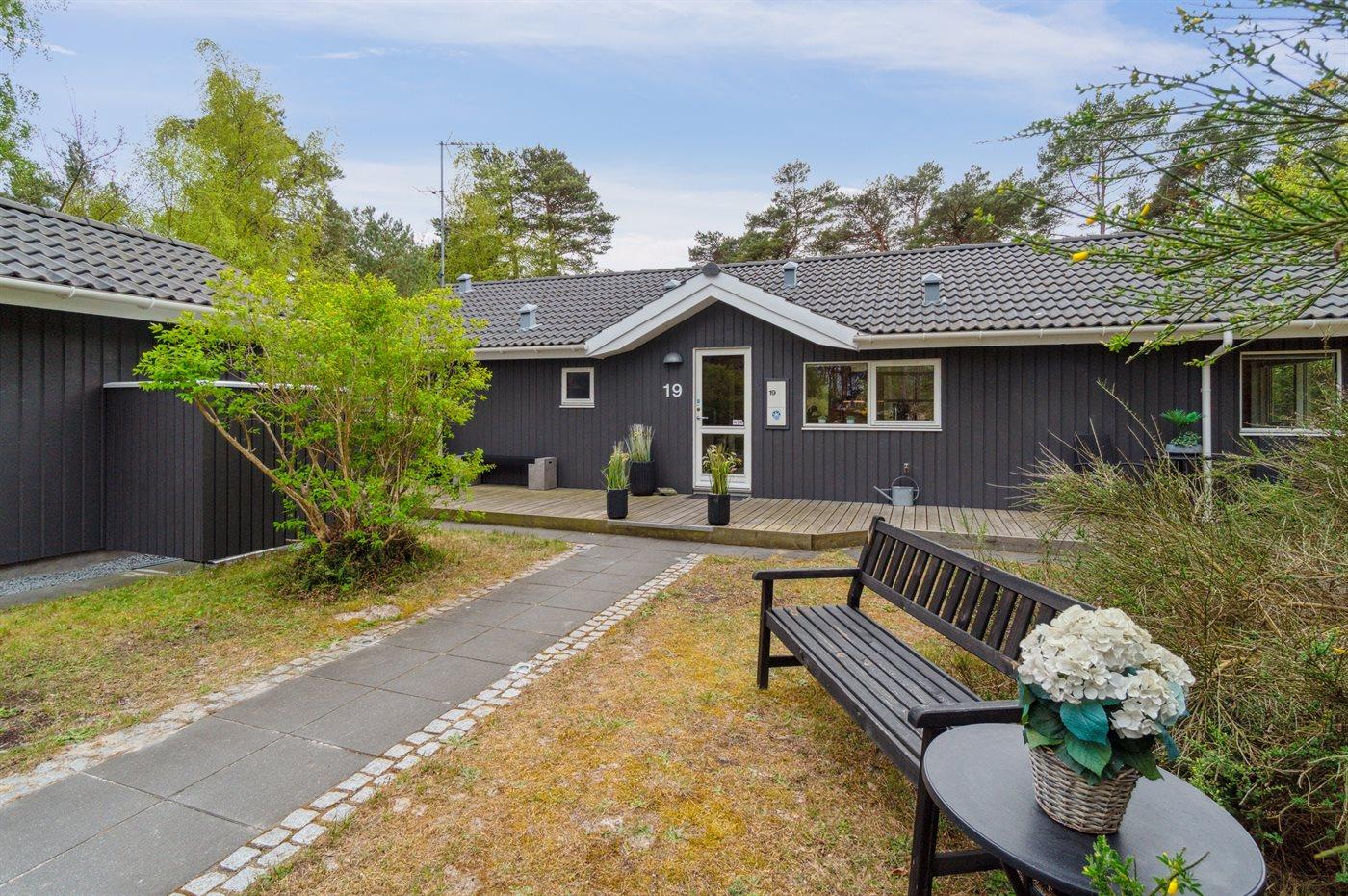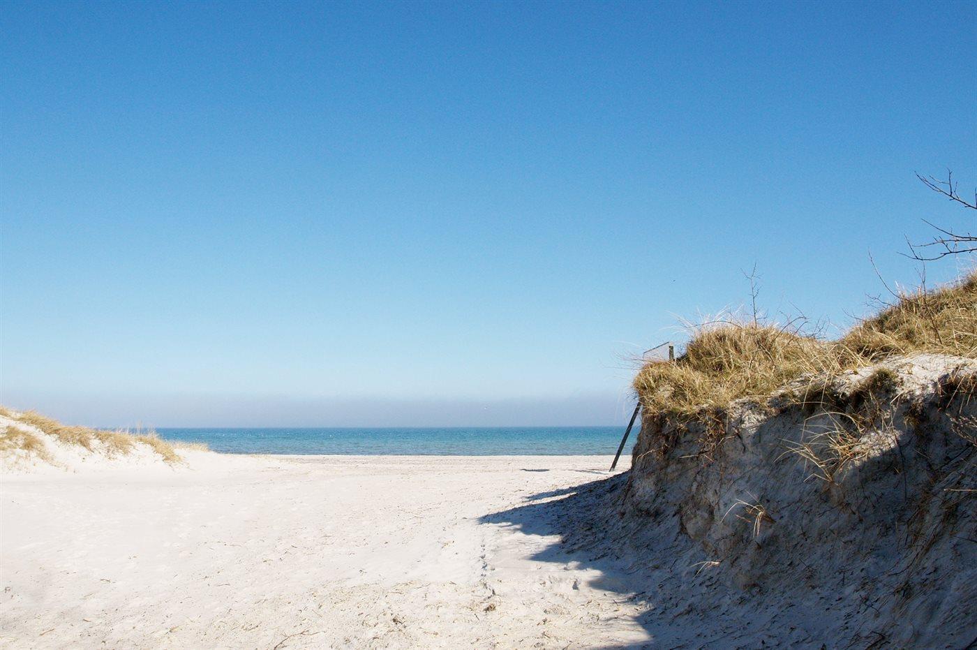 Ferieboligen er beliggende på en 1260 m² stor naturgrund. Der er 75 m til havet. Nærmeste forretning er beliggende i en afstand af 900 m. Til ferieboligen hører 25 m² terrasseareal. Desuden er der 18 m² overdækket terrasse. Der er redskabsrum. Gynge. Afskærmet udendørs bruser. Grill til rådighed. Der er installeret stik til opladning af elbil. Type 2 stik. Parkering ved ferieboligen.