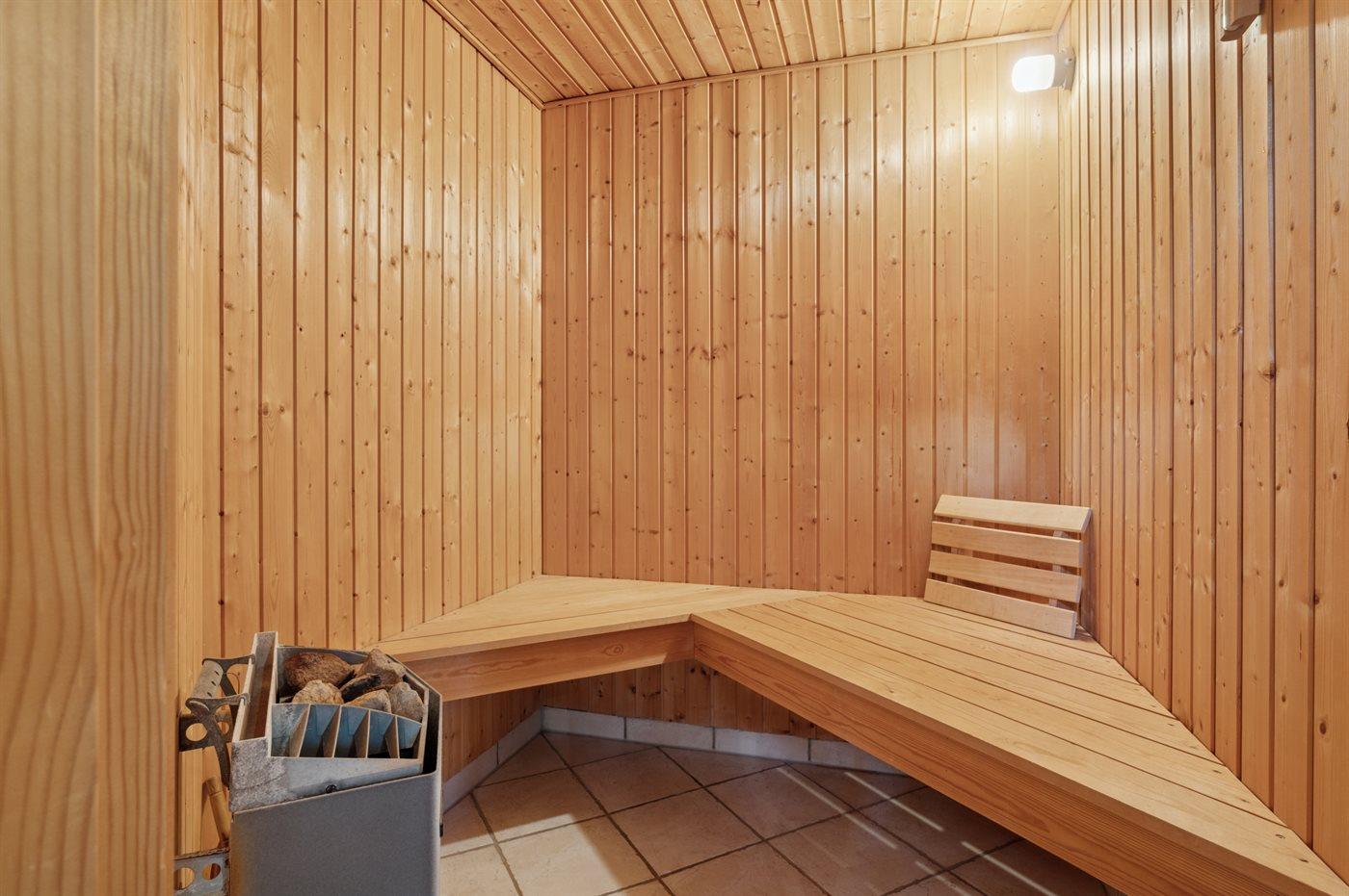 Der er 2 badeværelser med bruseniche og 2 toiletter. Der er gulvvarme på 2 badeværelser. I saunaen er der mulighed for afslapning.