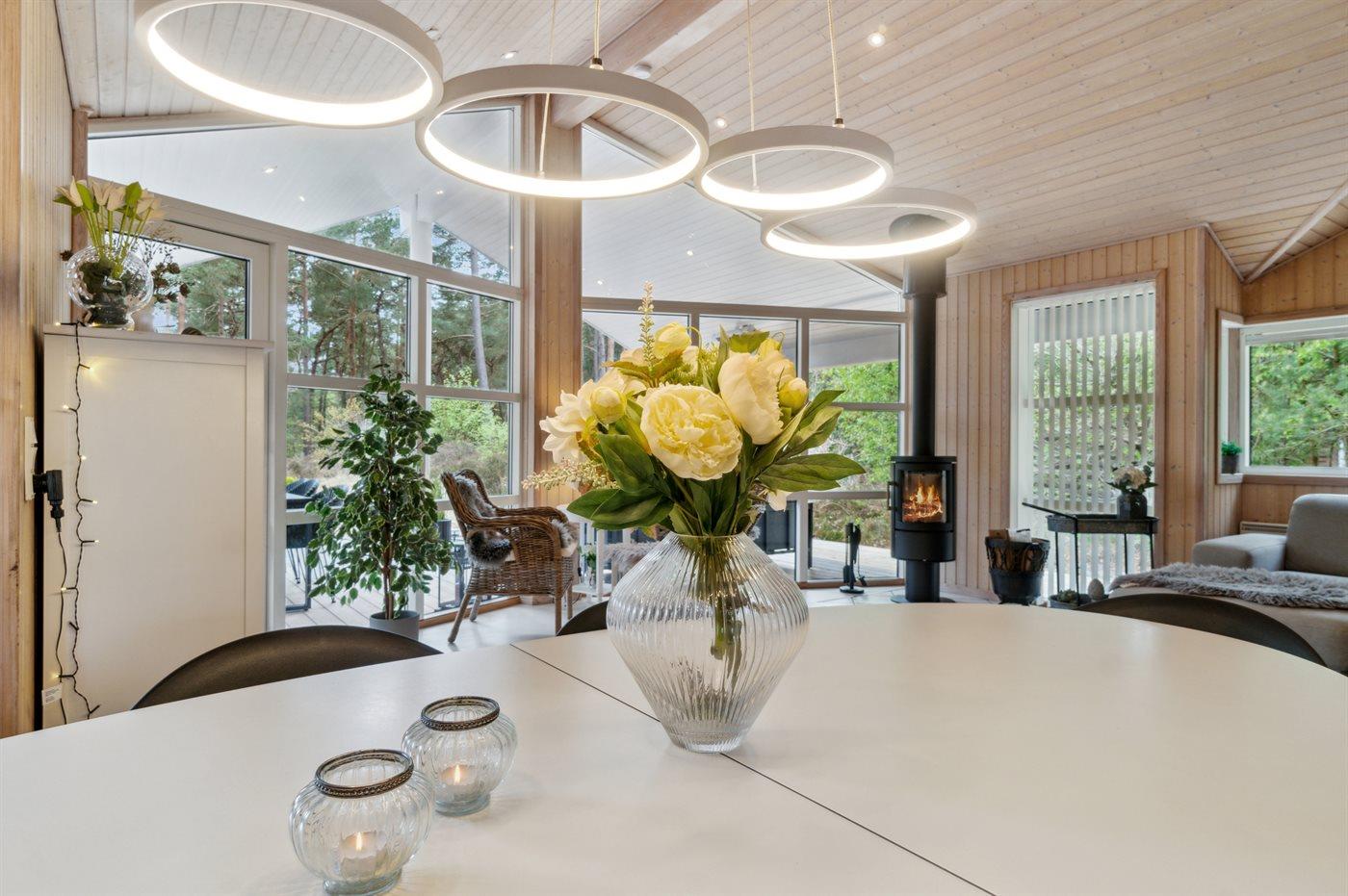 Sommerhuset egner sig til 8 personer. 2 af sovepladserne er kun egnet til større børn (4-11 år). Ferieboligen er på 105 m² og er bygget i 2003. Det er ikke tilladt at medbringe husdyr. Ferieboligen er udstyret med energibesparende varmepumpe. Ferieboligen har vaskemaskine. Tørretumbler. Frysekapacitet på 50 liter. Der er desuden brændeovn.