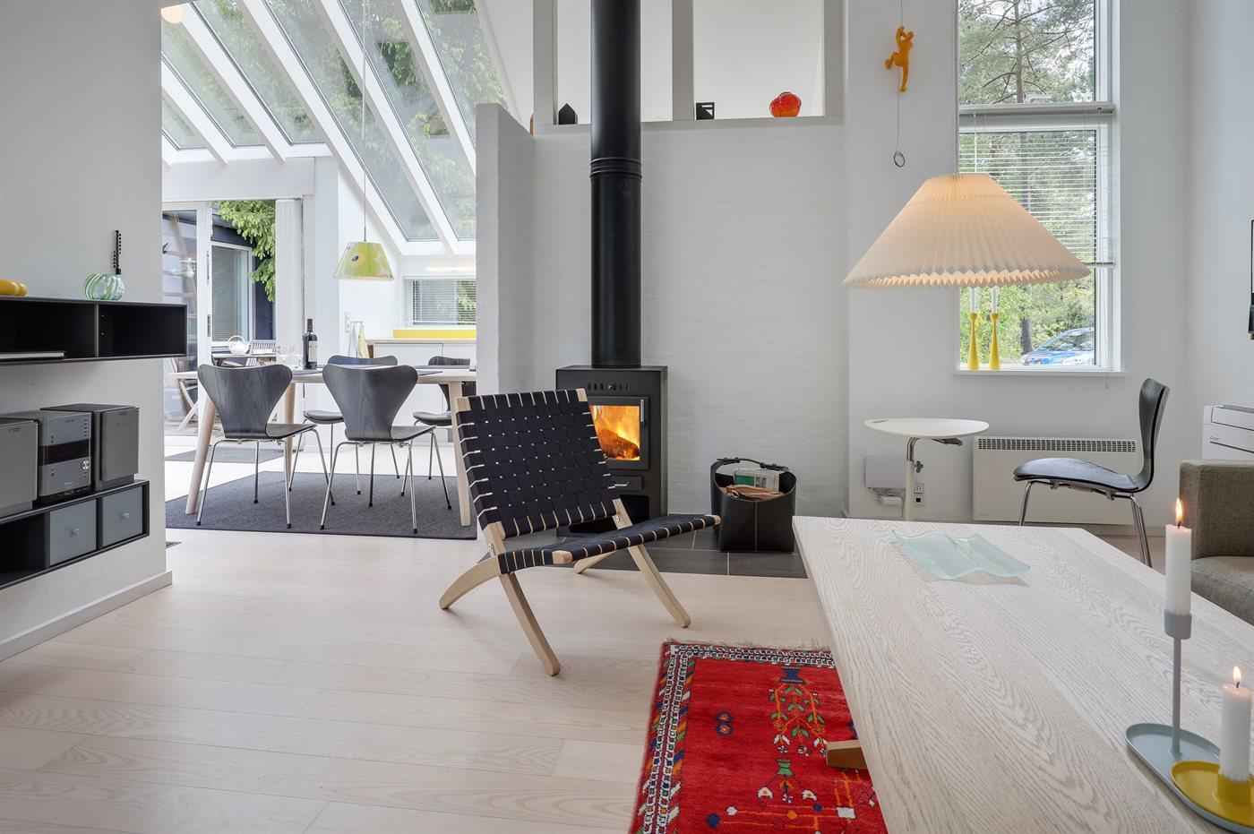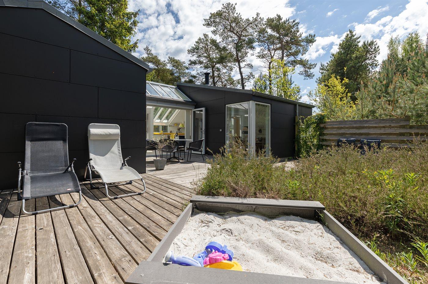 Velindrettet sommerhus nær Balka Strand med spabad og store glasfacader for naturligt lys.