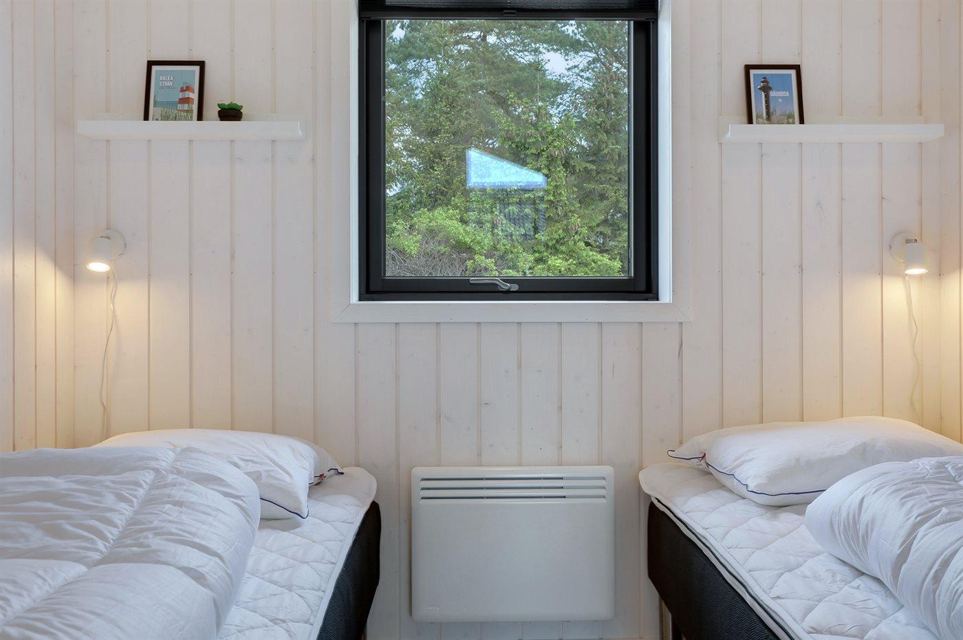 Der er i alt 5 soveværelser. Sovepladserne fordeler sig på: 6 sovepladser i dobbeltsenge. 4 sovepladser i enkeltsenge.